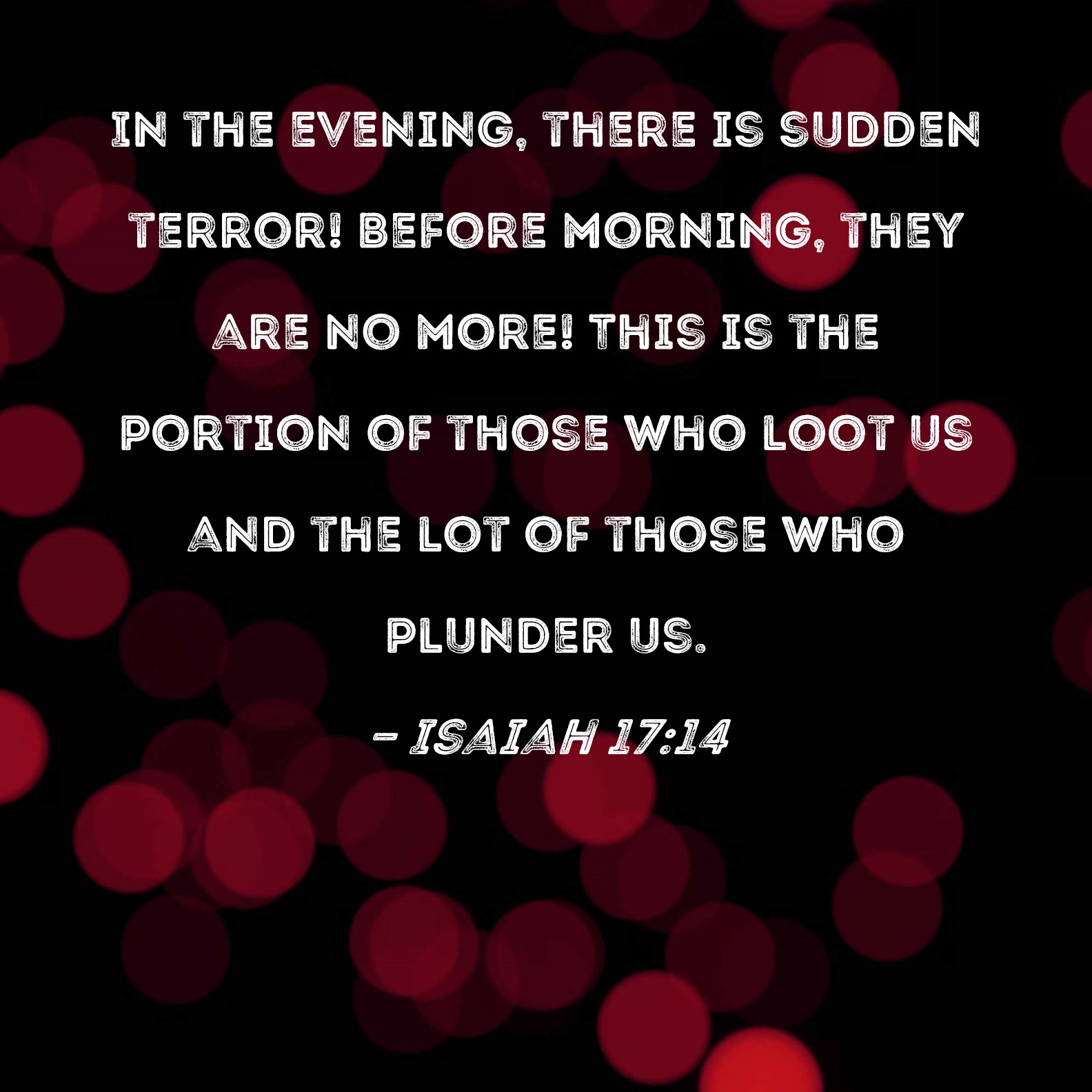 Isaiah 17:14 In the evening, there is sudden terror! Before morning, they are no more! This is the portion of those who loot us and the lot of those who plunder us.