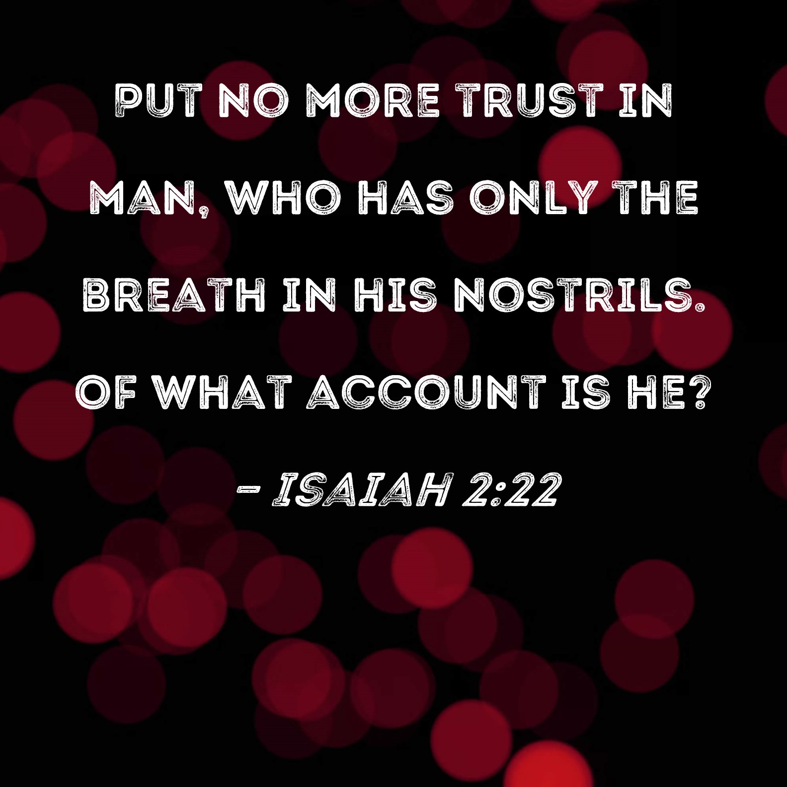 Isaiah 2:22 Put no more trust in man, who has only the breath in his nostrils. Of what account is he?