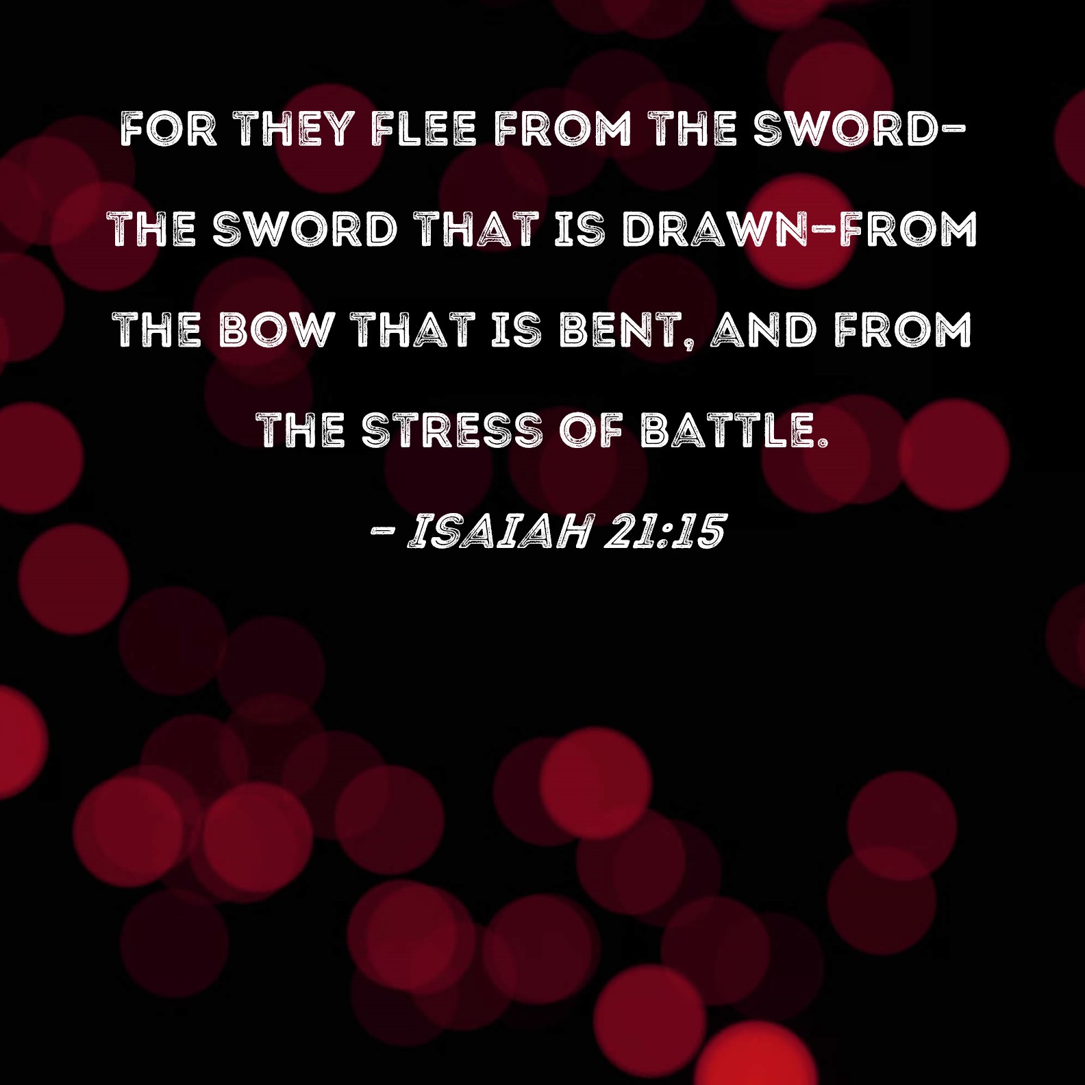 Isaiah 21:15 For they flee from the sword--the sword that is drawn--from the bow that is bent, and from the stress of battle.