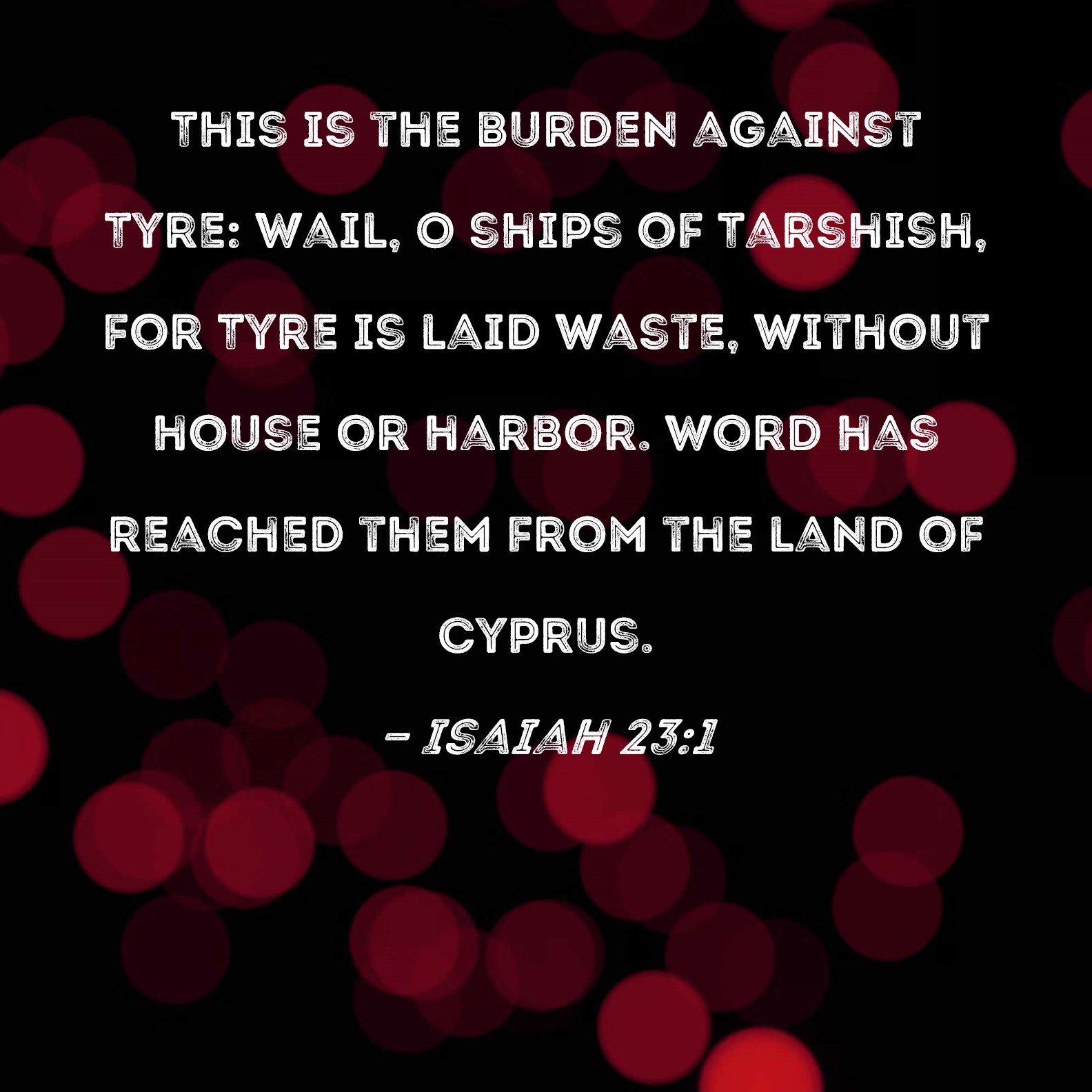 Isaiah 23:1 This is the burden against Tyre: Wail, O ships of Tarshish, for Tyre is laid waste, without house or harbor. Word has reached them from the land of Cyprus.