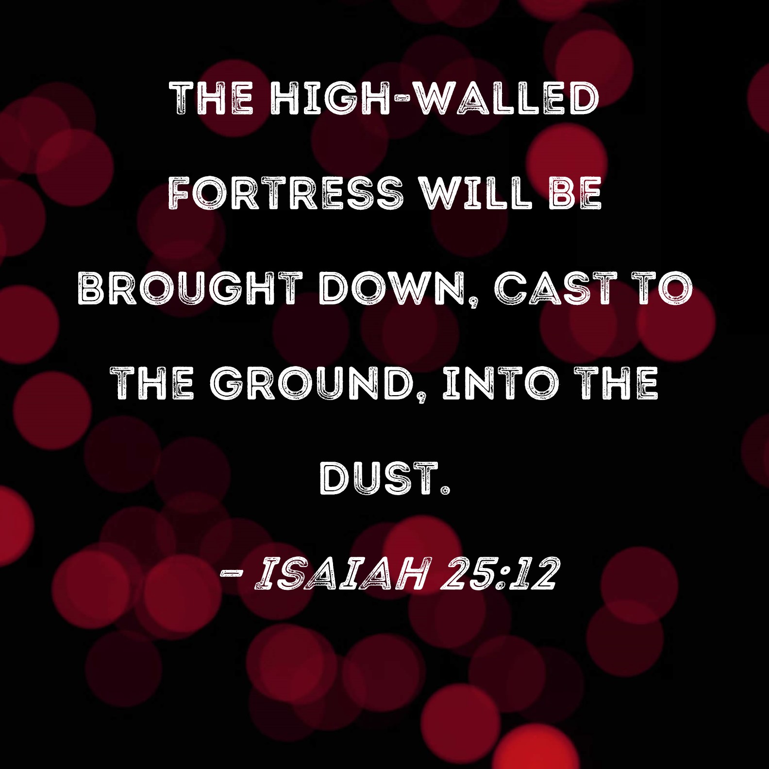 Isaiah 25:12 The high-walled fortress will be brought down, cast to the ground, into the dust.