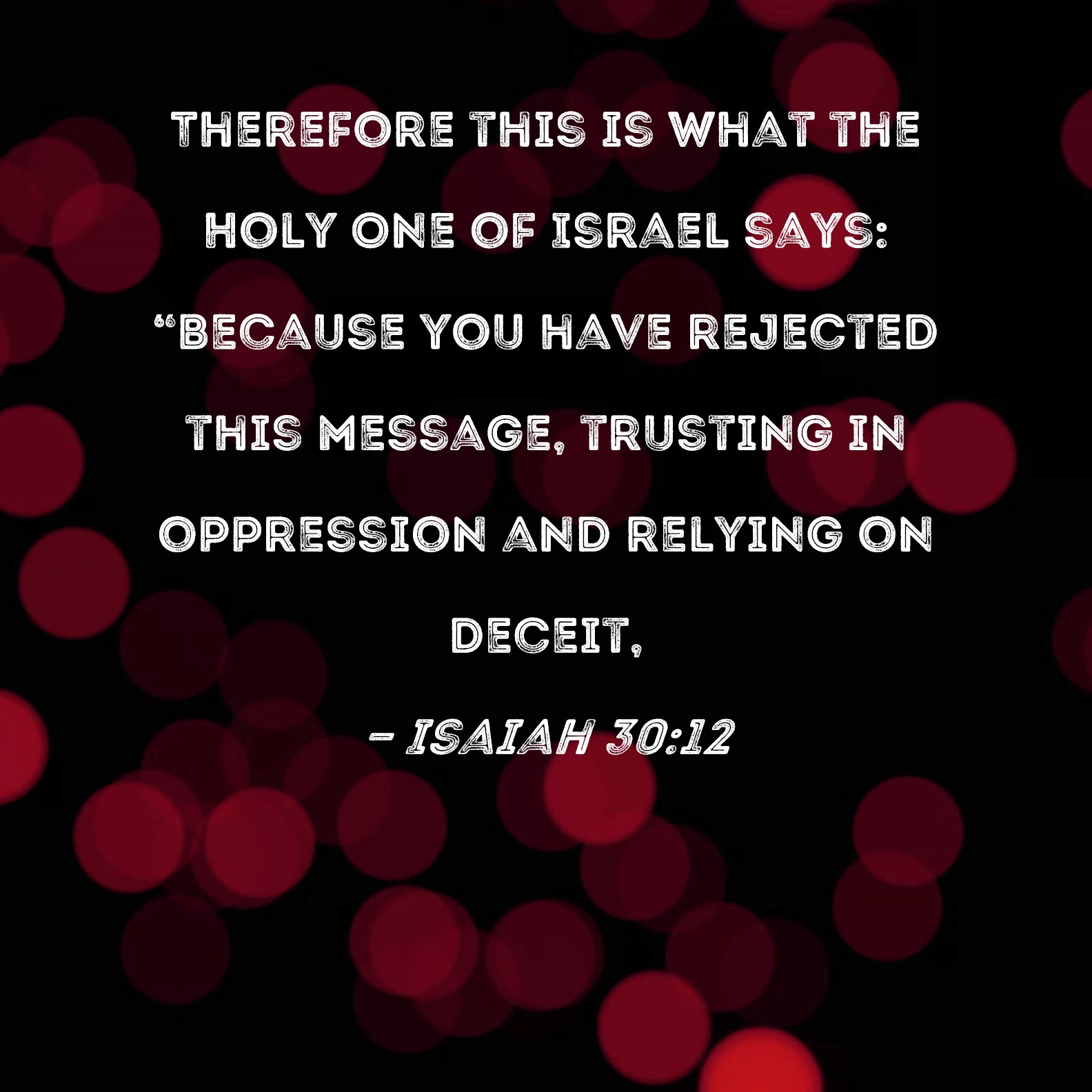 Isaiah 30:12 Therefore this is what the Holy One of Israel says: "Because you have rejected this message, trusting in oppression and relying on deceit,