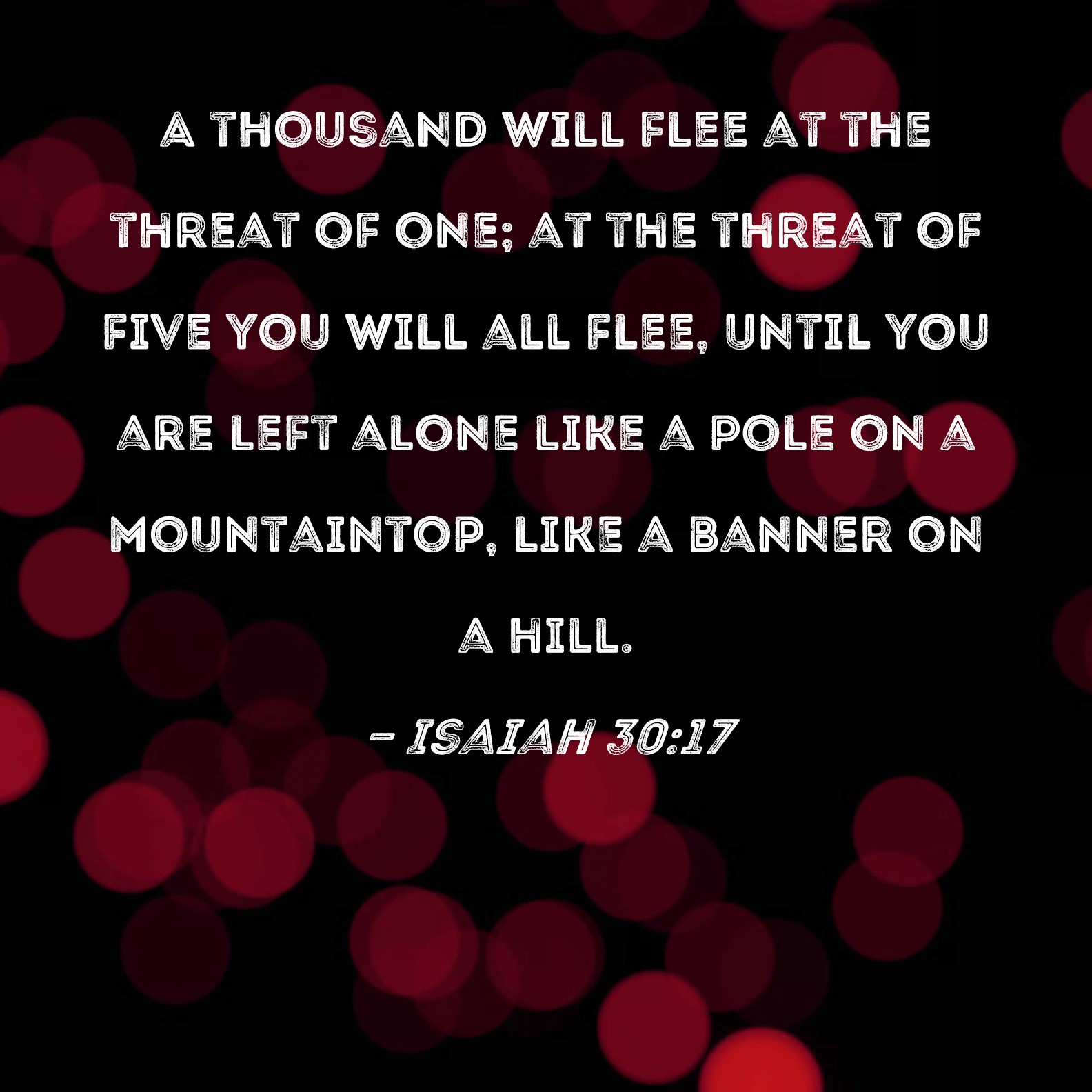 Isaiah 30:17 A thousand will flee at the threat of one; at the threat of five you will all flee, until you are left alone like a pole on a mountaintop, like a banner on a hill.