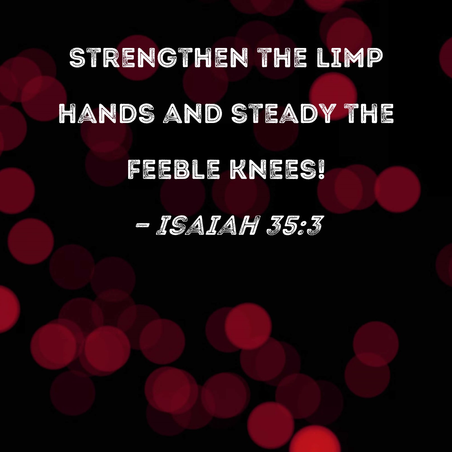 Isaiah 35:3 Strengthen the limp hands and steady the feeble knees!