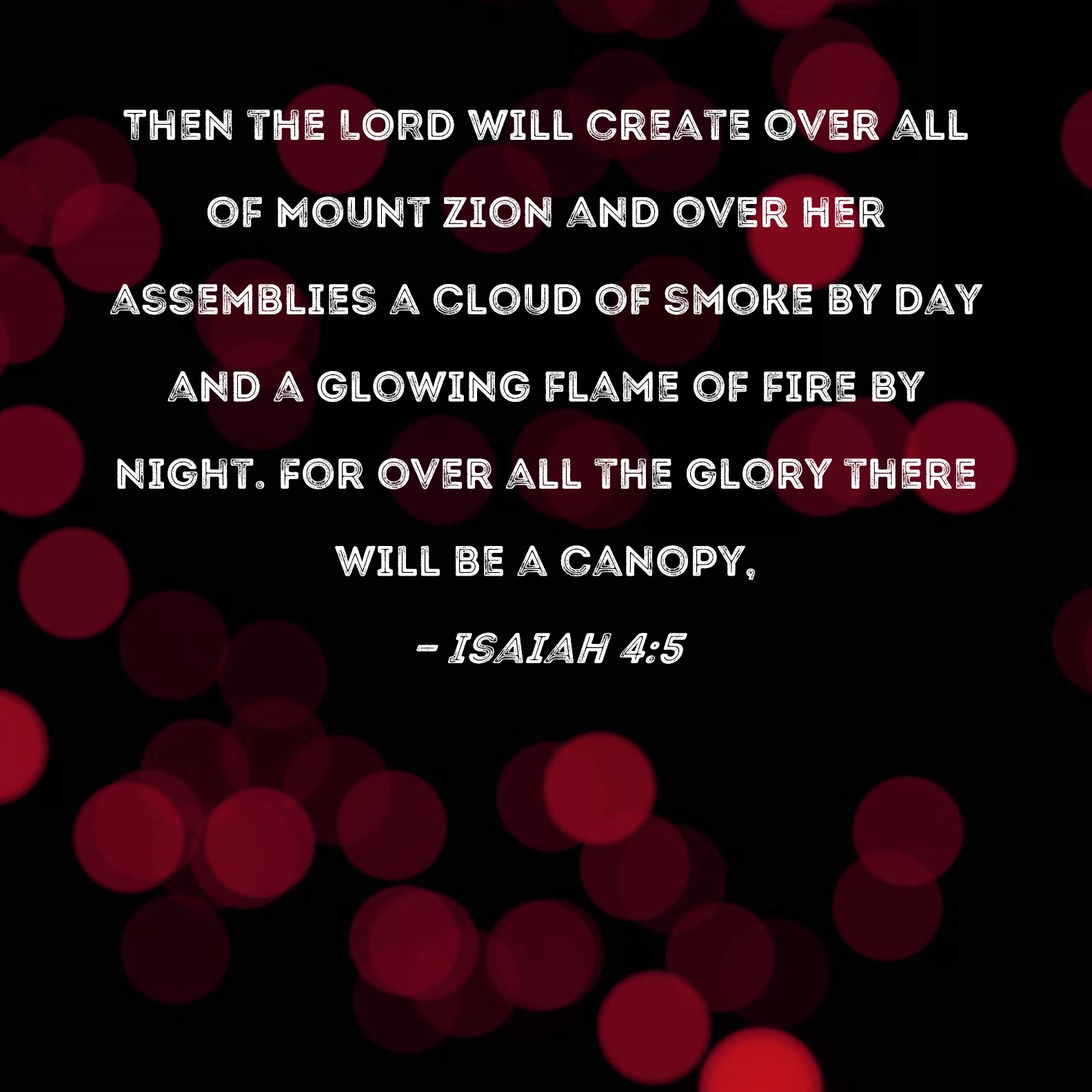 Isaiah 4:5 Then the LORD will create over all of Mount Zion and over her assemblies a cloud of smoke by day and a glowing flame of fire by night. For over all the glory there will be a canopy,