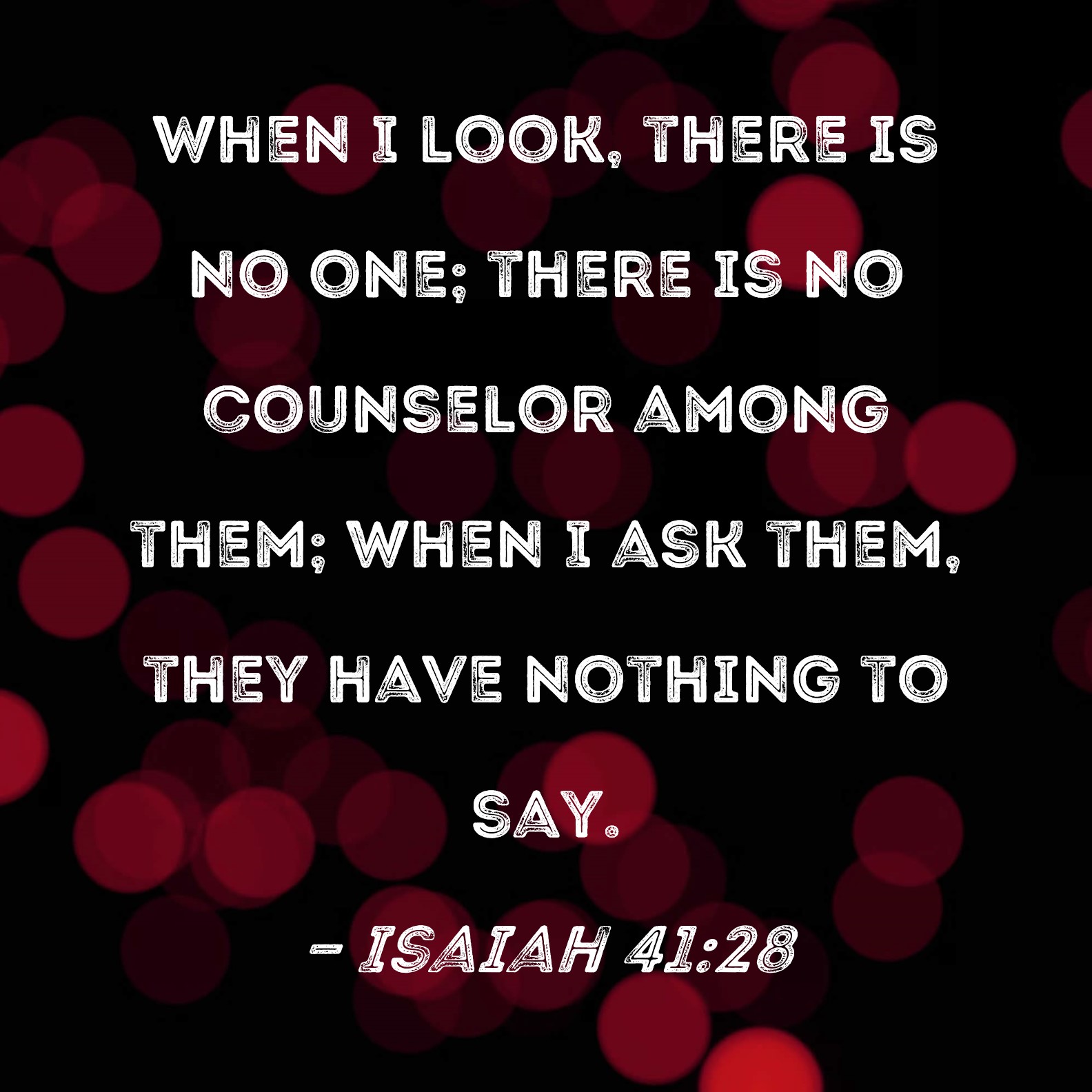 Isaiah 41:28 When I look, there is no one; there is no counselor among them; when I ask them, they have nothing to say.