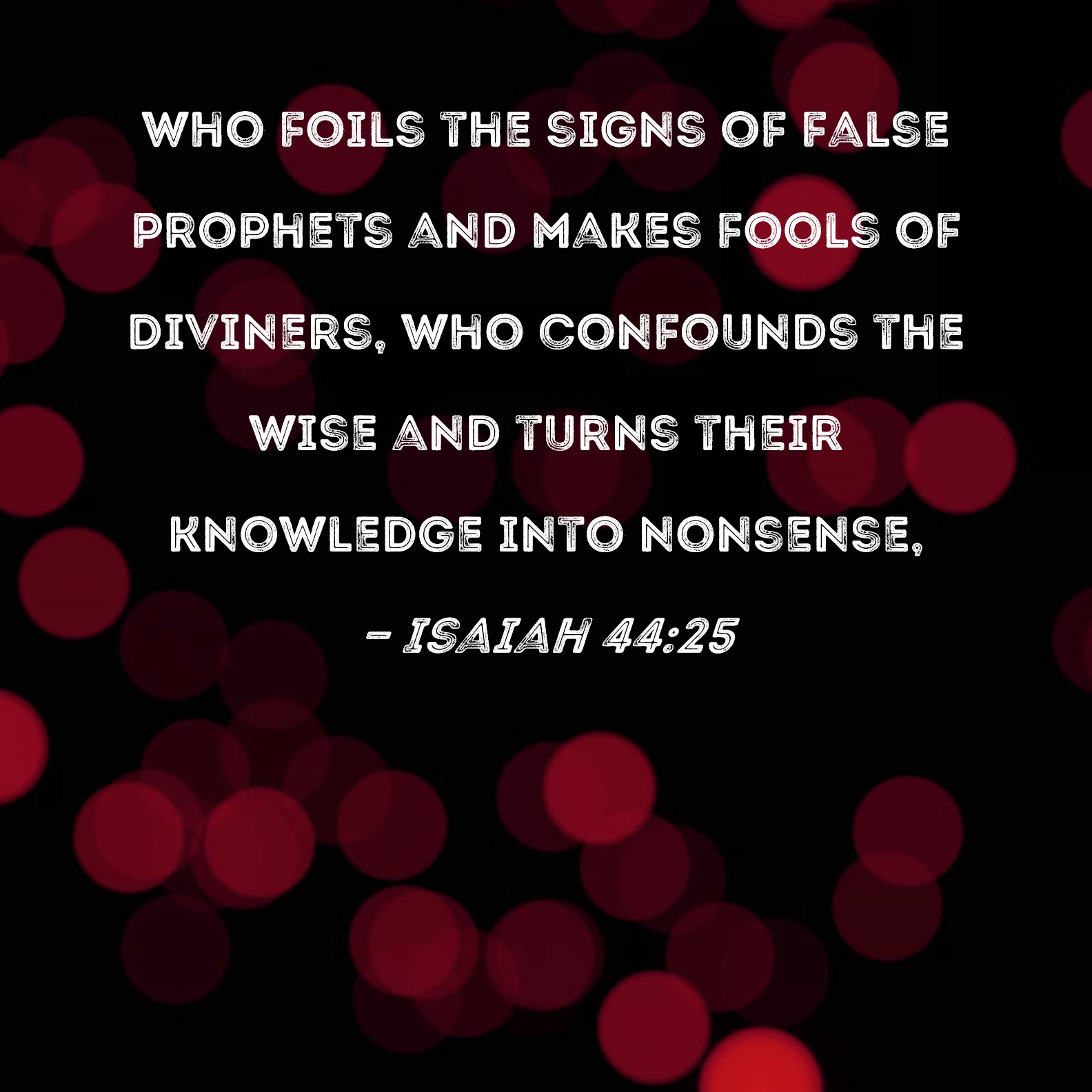 Isaiah 44:25 who foils the signs of false prophets and makes fools of diviners, who confounds the wise and turns their knowledge into nonsense,