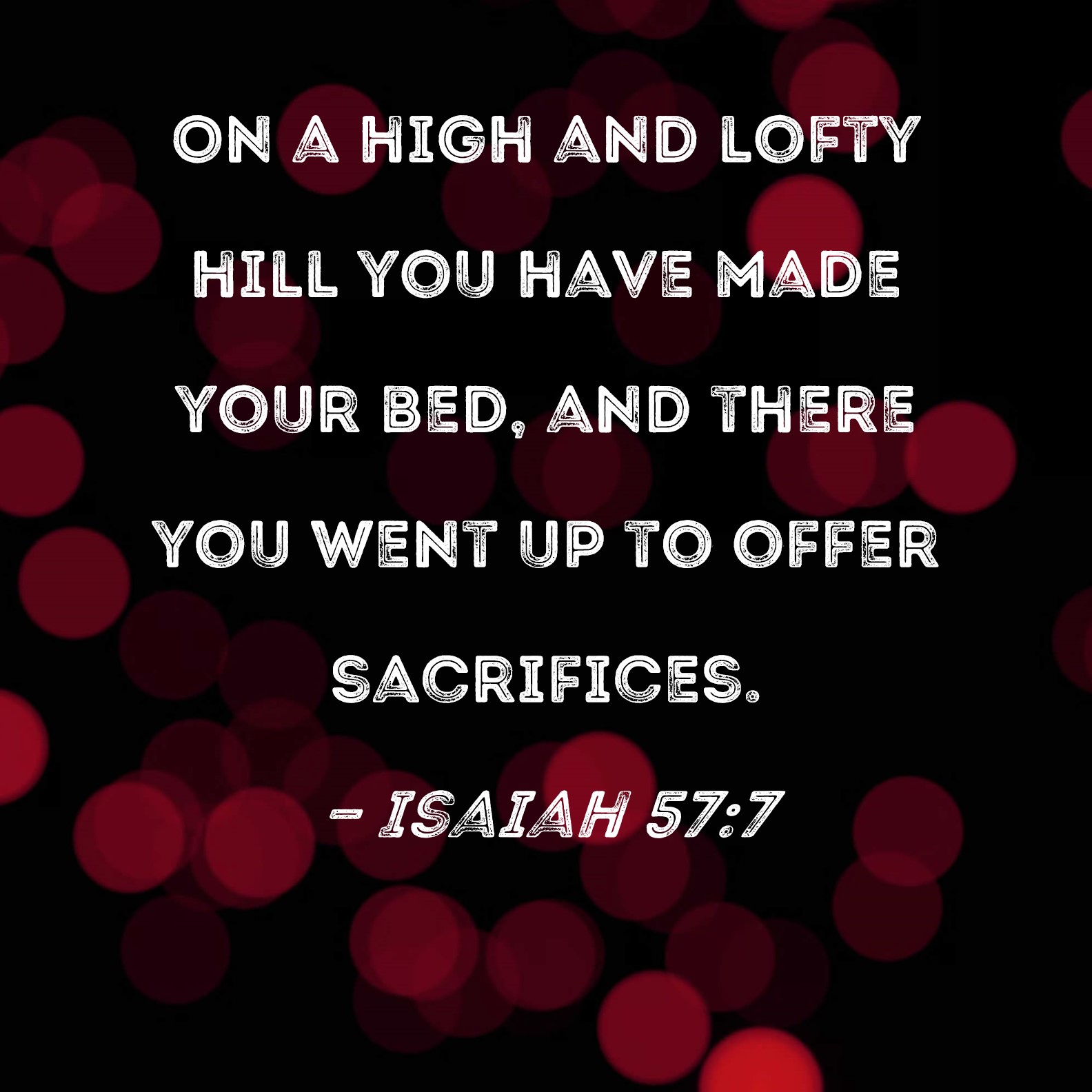 Isaiah 57:7 On a high and lofty hill you have made your bed, and there you went up to offer sacrifices.