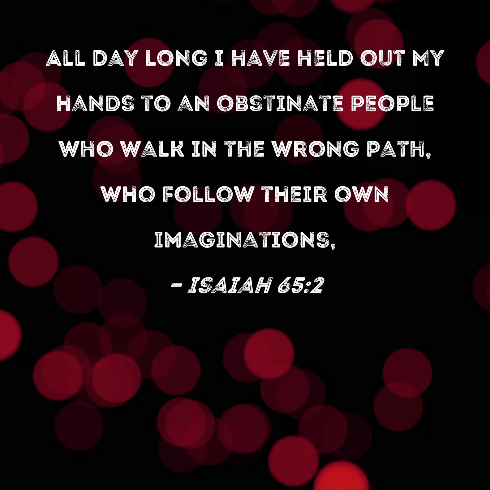 Isaiah 65:2 All day long I have held out My hands to an obstinate people who walk in the wrong path, who follow their own imaginations,