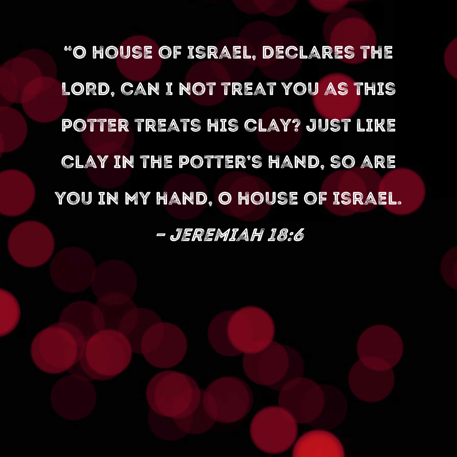 Jeremiah 18:6 "O house of Israel, declares the LORD, can I not treat you as this potter treats his clay? Just like clay in the potter's hand, so are you in My hand, O house of Israel.
