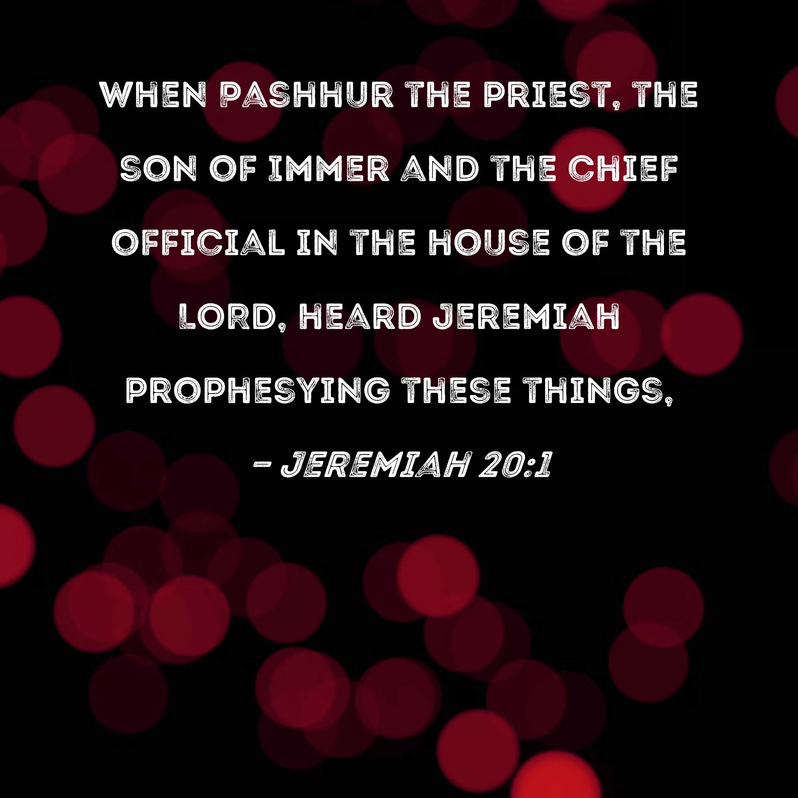 Jeremiah 20:1 When Pashhur the priest, the son of Immer and the chief official in the house of the LORD, heard Jeremiah prophesying these things,