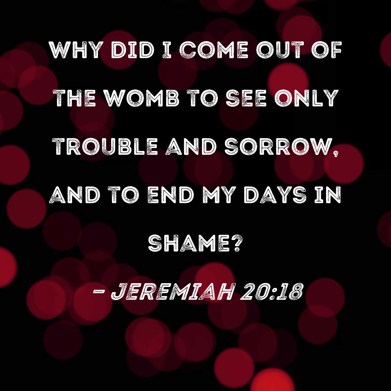 Jeremiah 20:18 Why did I come out of the womb to see only trouble and sorrow, and to end my days in shame?