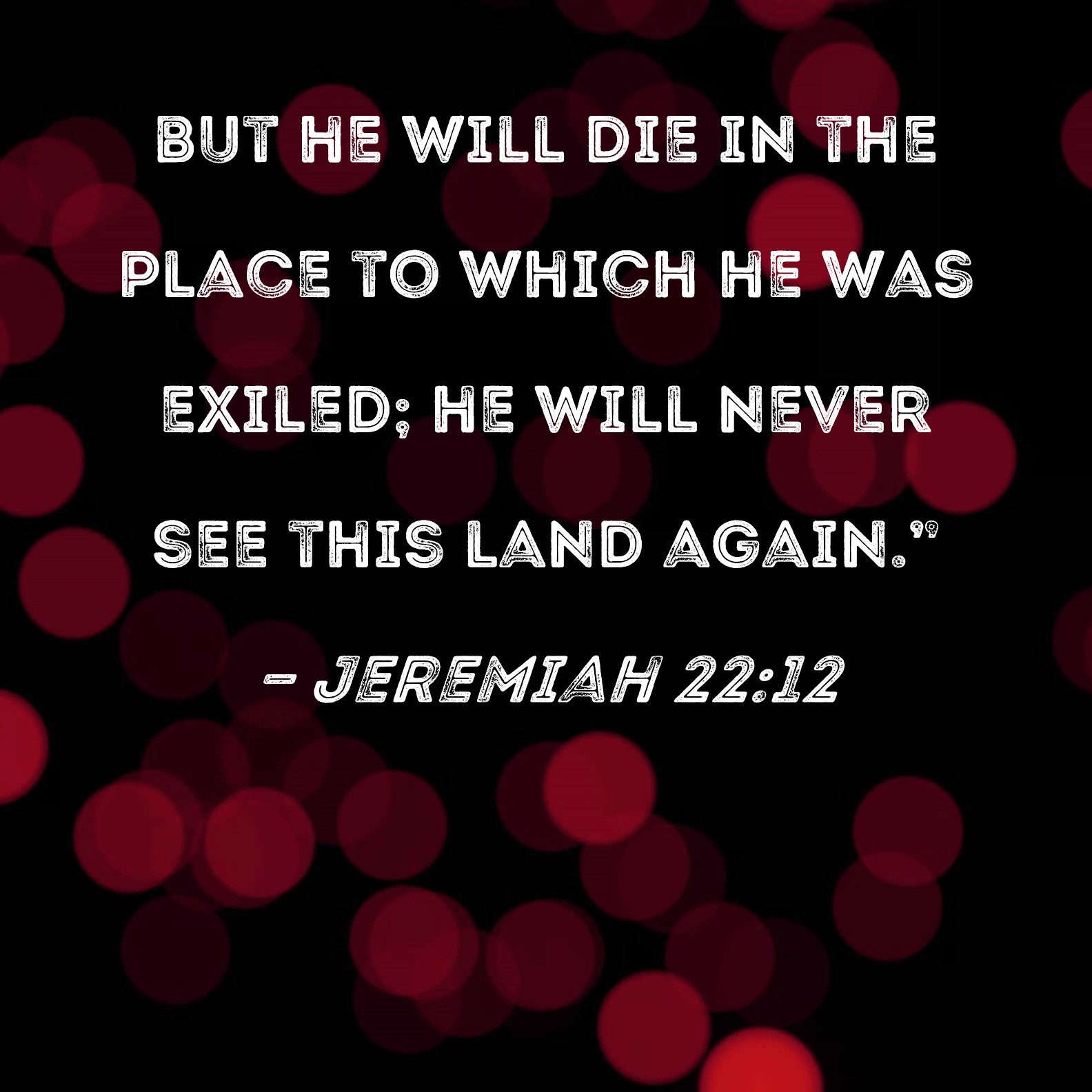 Jeremiah 22:12 but he will die in the place to which he was exiled; he will never see this land again."