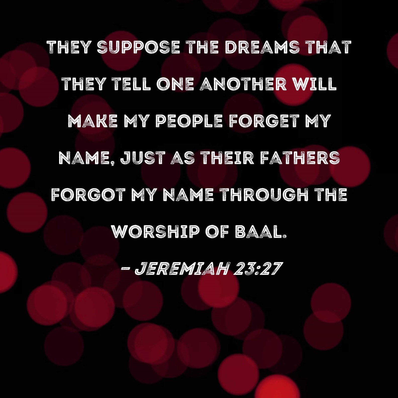 Jeremiah 23:27 They suppose the dreams that they tell one another will make My people forget My name, just as their fathers forgot My name through the worship of Baal.