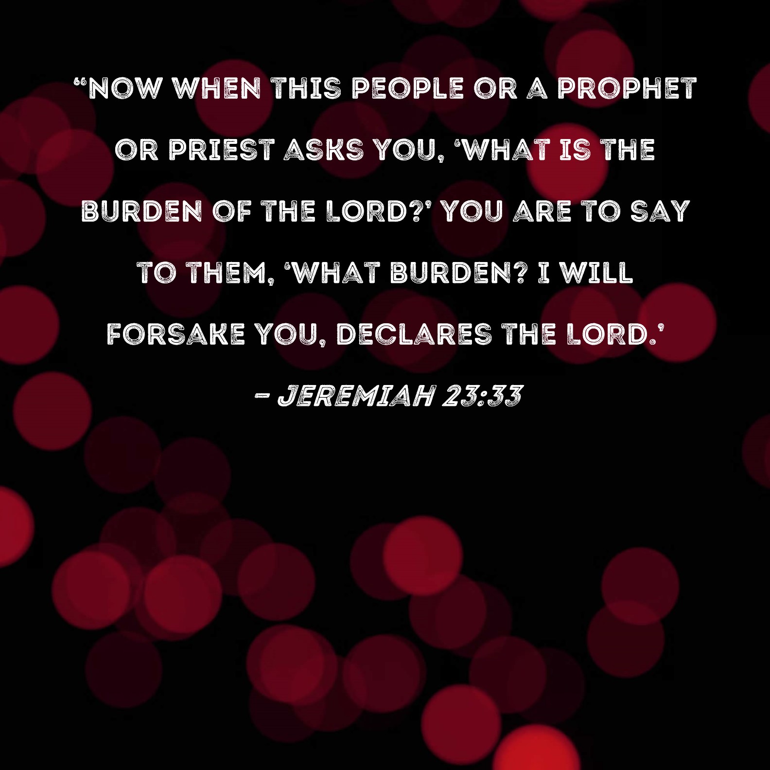 Jeremiah 23:33 "Now when this people or a prophet or priest asks you, 'What is the burden of the LORD?' you are to say to them, 'What burden? I will forsake you, declares the LORD.'