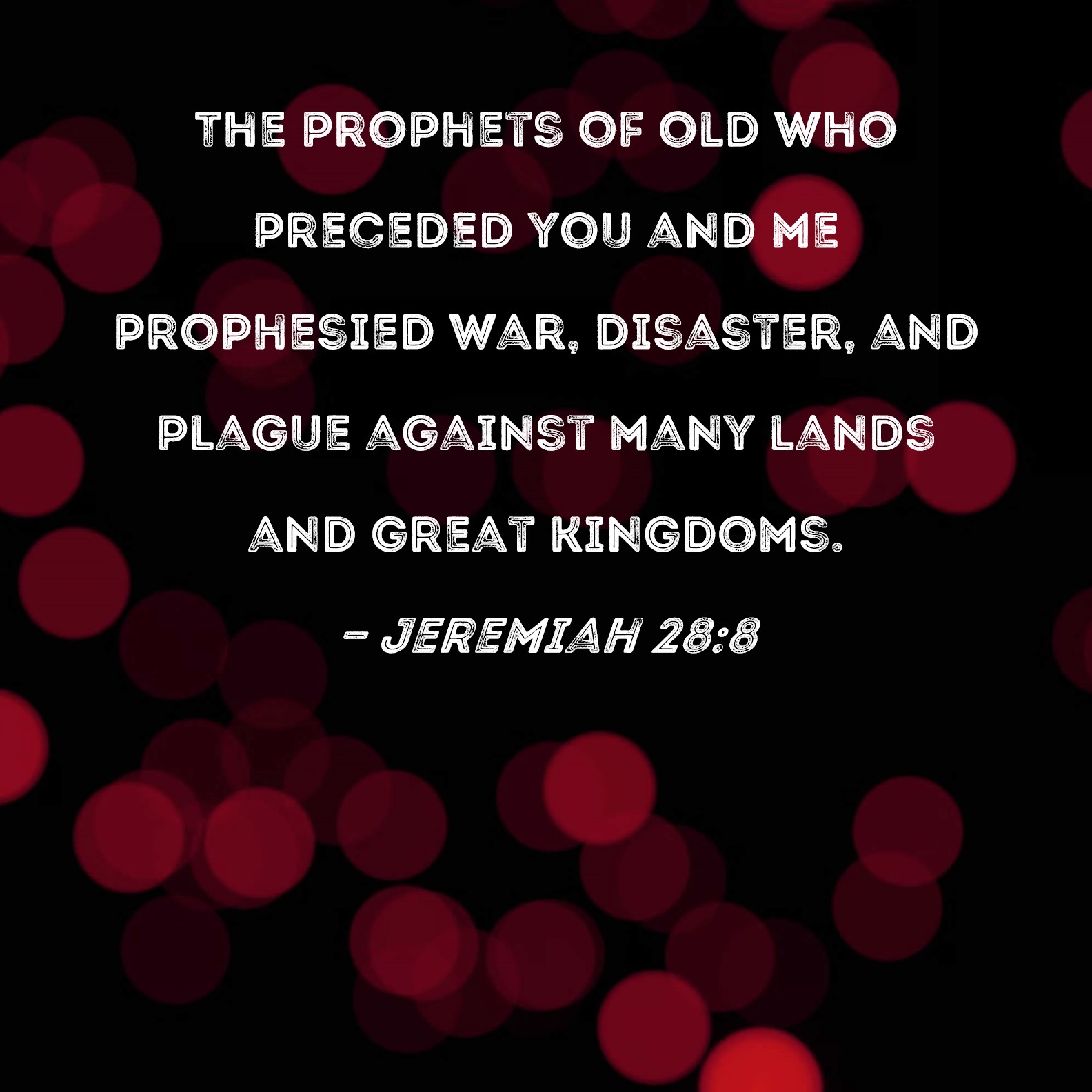 Jeremiah 28:8 The prophets of old who preceded you and me prophesied war, disaster, and plague against many lands and great kingdoms.