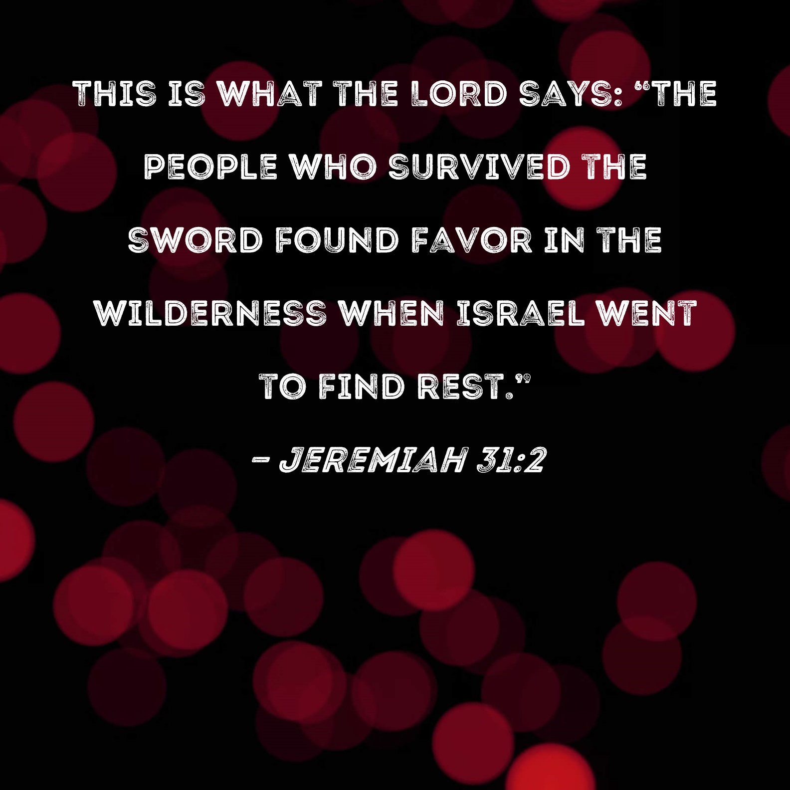 Jeremiah 31:2 This is what the LORD says: "The people who survived the sword found favor in the wilderness when Israel went to find rest."