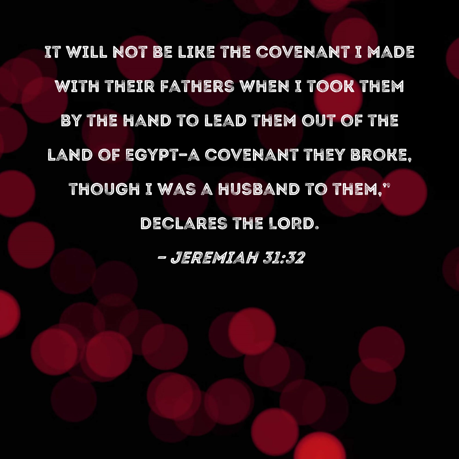 Jeremiah 31:32 It will not be like the covenant I made with their fathers when I took them by the hand to lead them out of the land of Egypt--a covenant they broke, though I was a husband to them," declares the LORD.