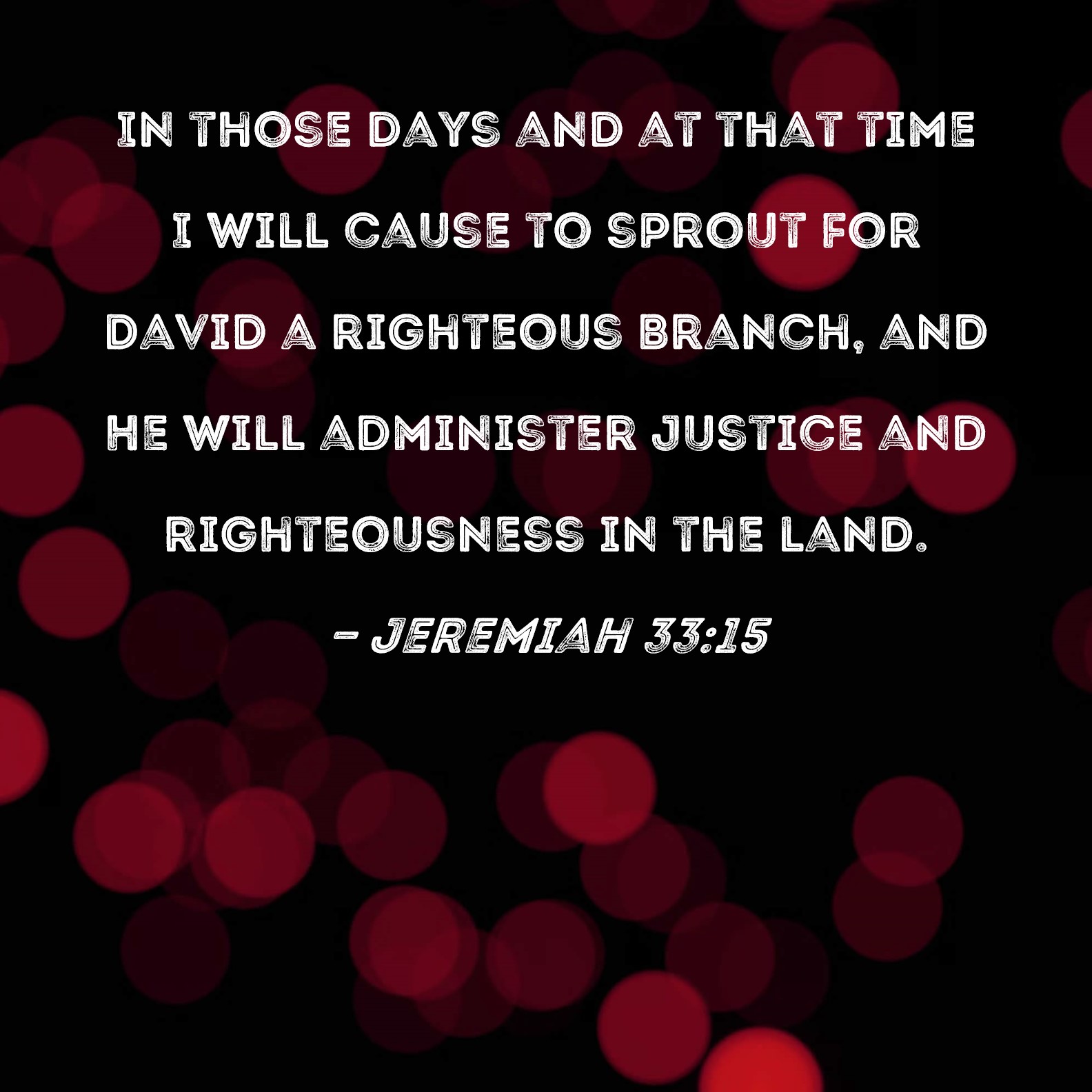 Jeremiah 33:15 In those days and at that time I will cause to sprout for David a righteous Branch, and He will administer justice and righteousness in the land.