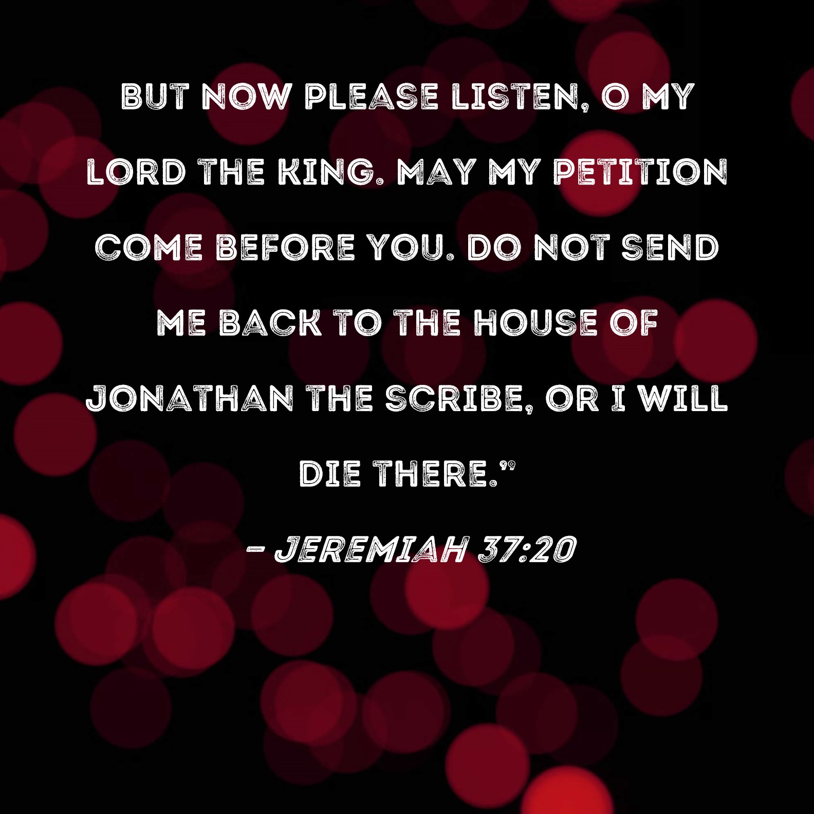 Jeremiah 37:20 But now please listen, O my lord the king. May my petition come before you. Do not send me back to the house of Jonathan the scribe, or I will die there."