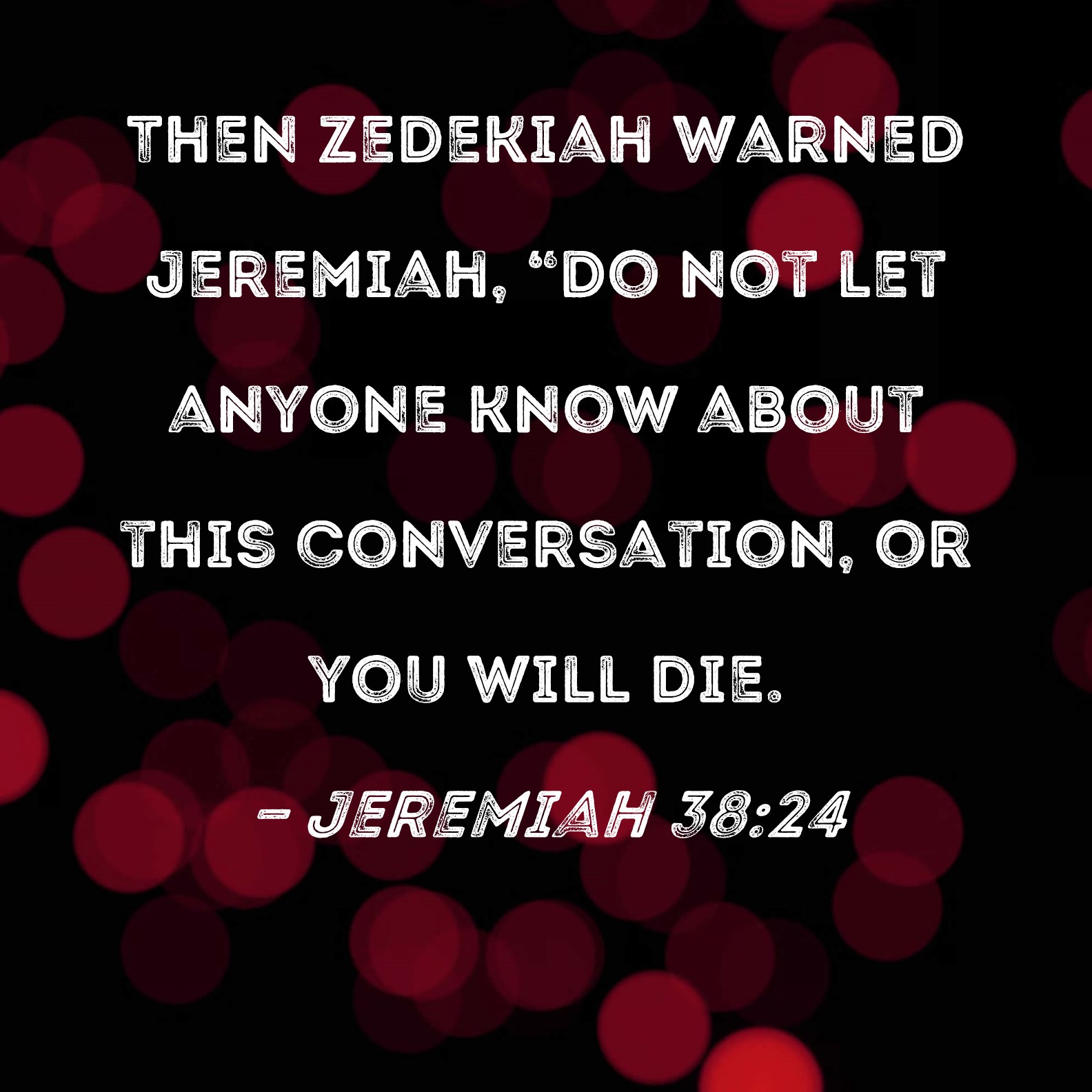 Jeremiah 38:24 Then Zedekiah warned Jeremiah, "Do not let anyone know about this conversation, or you will die.