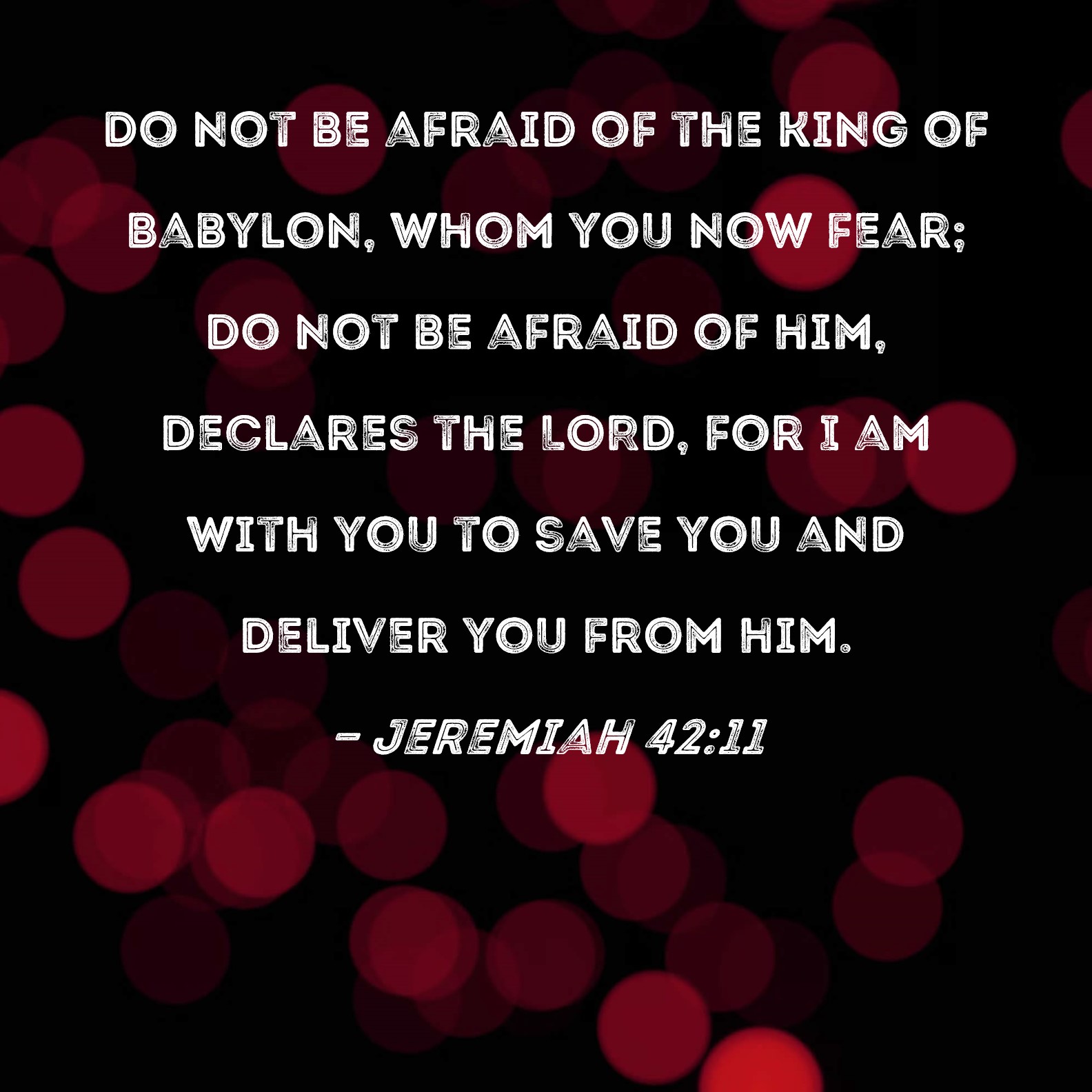 Jeremiah 42:11 Do not be afraid of the king of Babylon, whom you now fear; do not be afraid of him, declares the LORD, for I am with you to save you and deliver you from him.