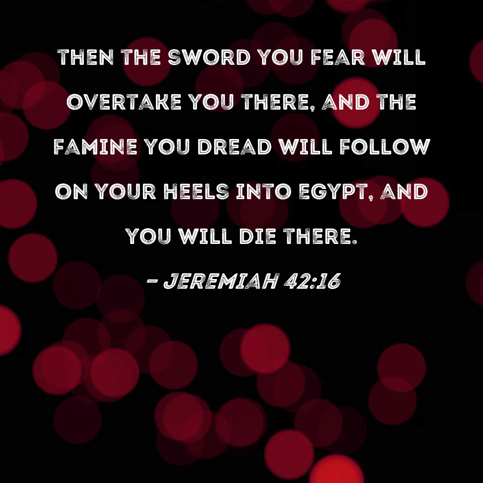 Jeremiah 42:16 then the sword you fear will overtake you there, and the famine you dread will follow on your heels into Egypt, and you will die there.
