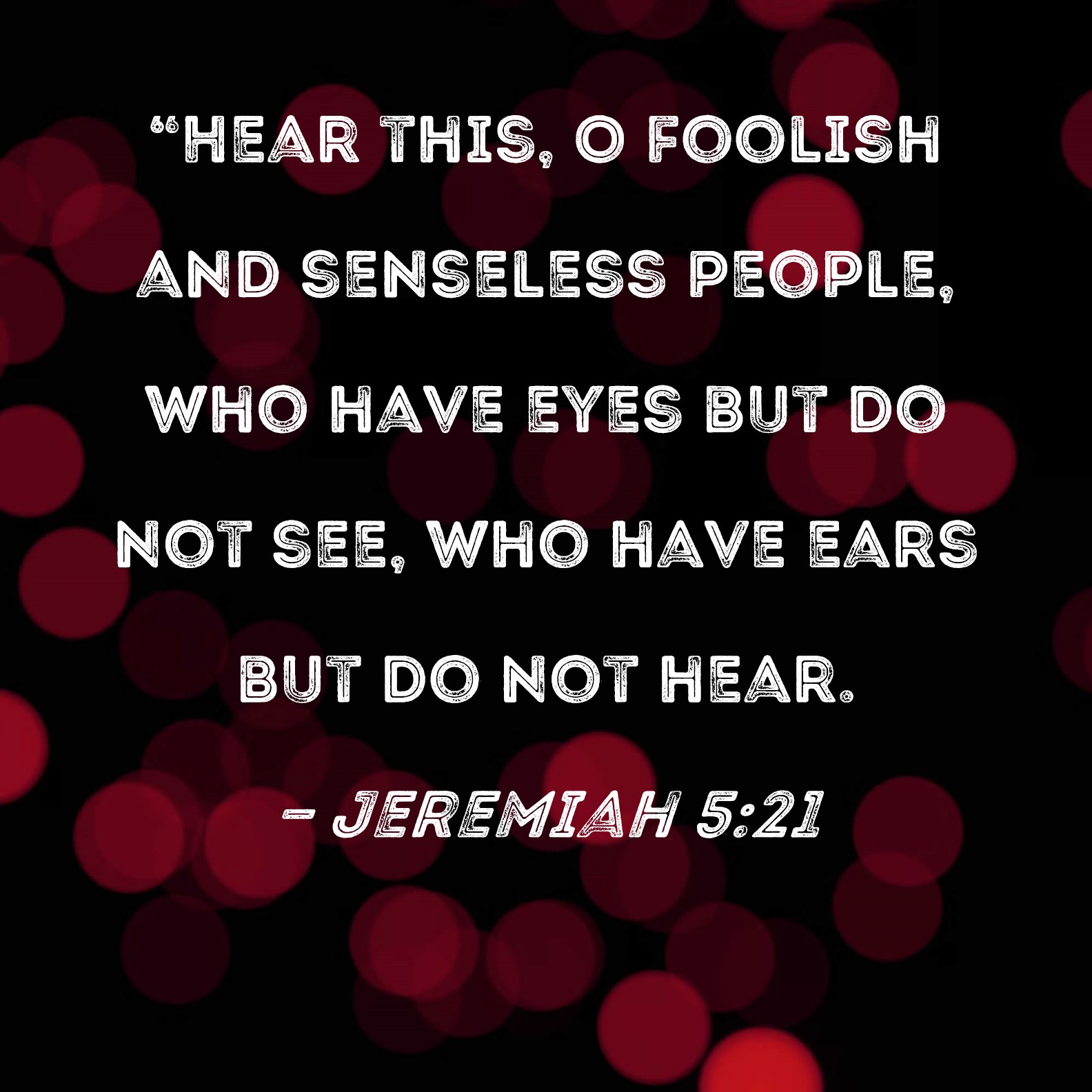 Jeremiah 5:21 "Hear this, O foolish and senseless people, who have eyes but do not see, who have ears but do not hear.