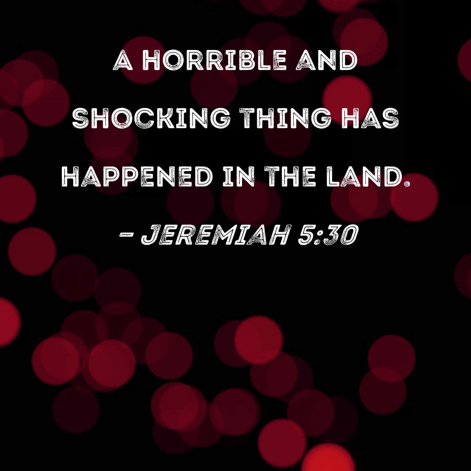 Jeremiah 5:30 A horrible and shocking thing has happened in the land.