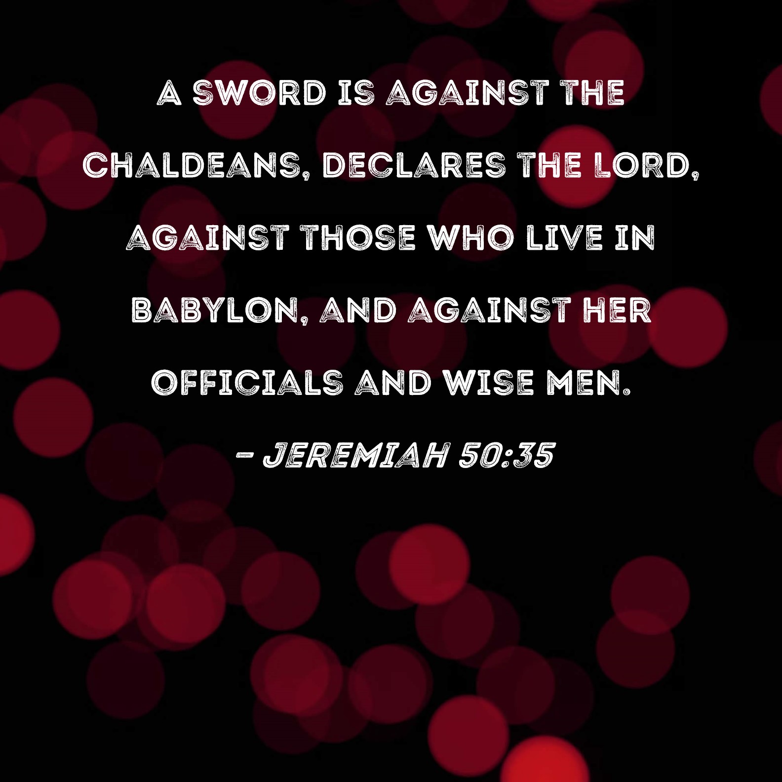 Jeremiah 50:35 A sword is against the Chaldeans, declares the LORD, against those who live in Babylon, and against her officials and wise men.