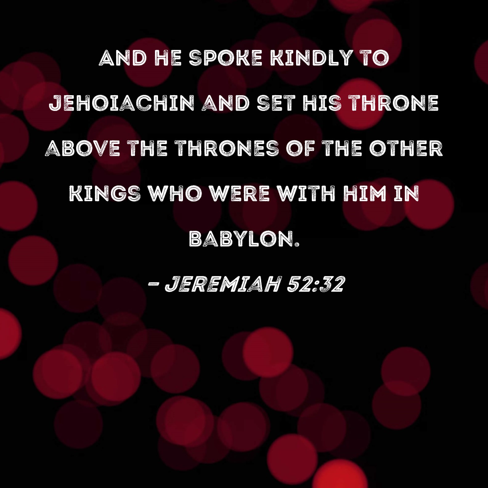 Jeremiah 52:32 And he spoke kindly to Jehoiachin and set his throne above the thrones of the other kings who were with him in Babylon.