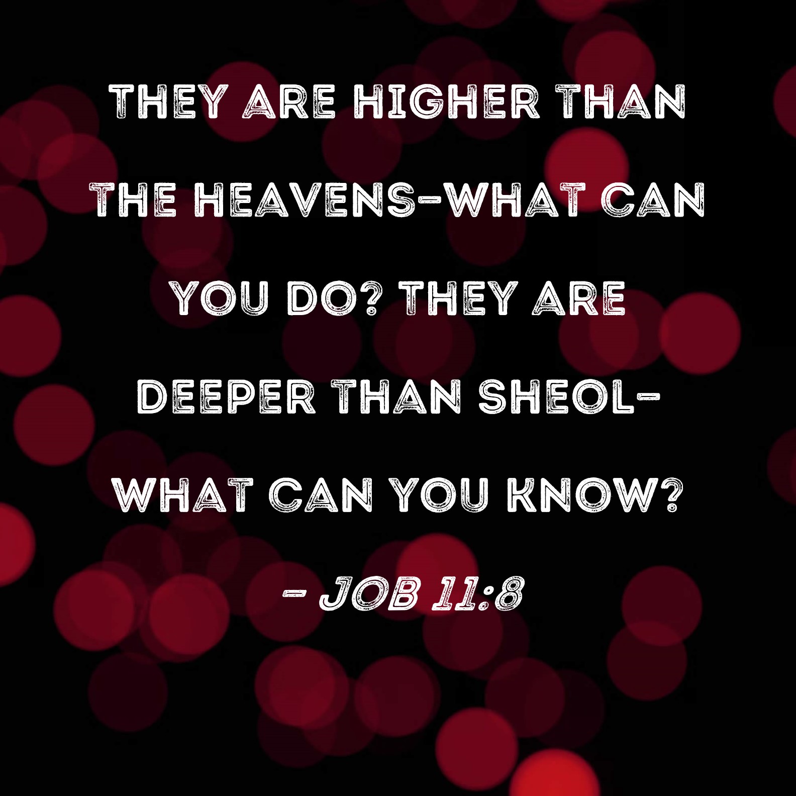 Job 11:8 They are higher than the heavens--what can you do? They are deeper than Sheol--what can you know?