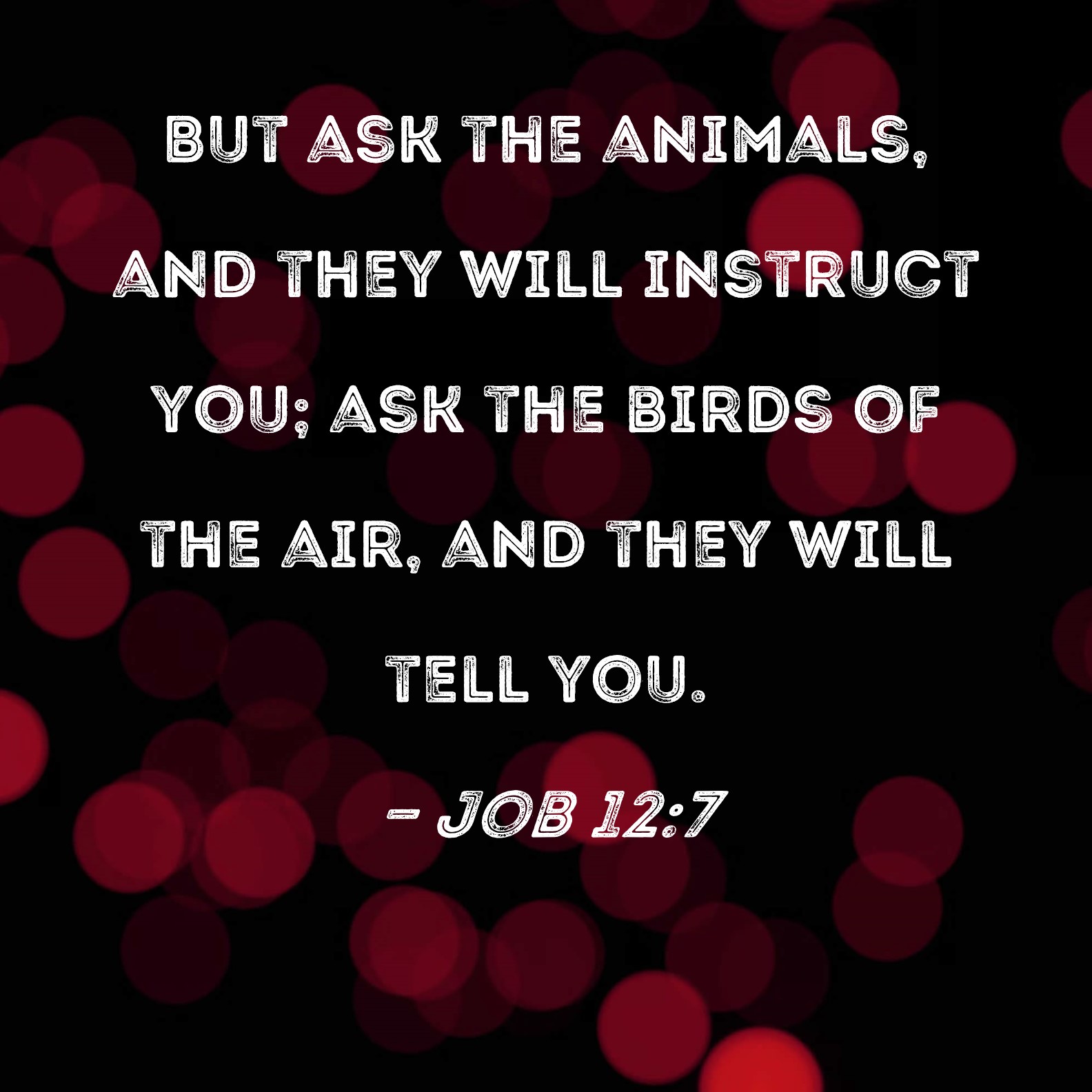 Job 12:7 But ask the animals, and they will instruct you; ask the birds of the air, and they will tell you.