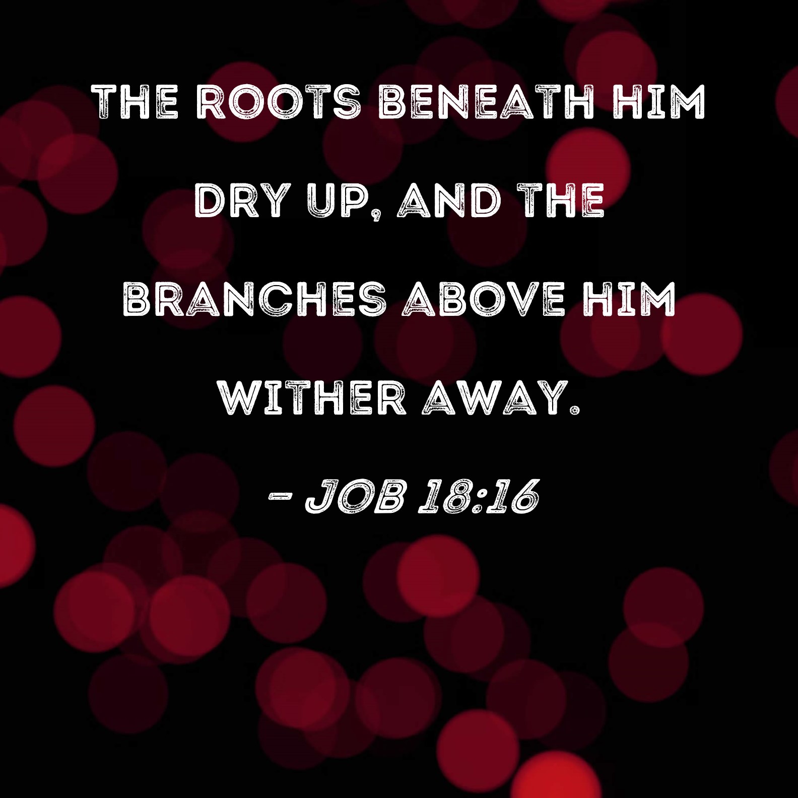 Job 18:16 The roots beneath him dry up, and the branches above him wither away.