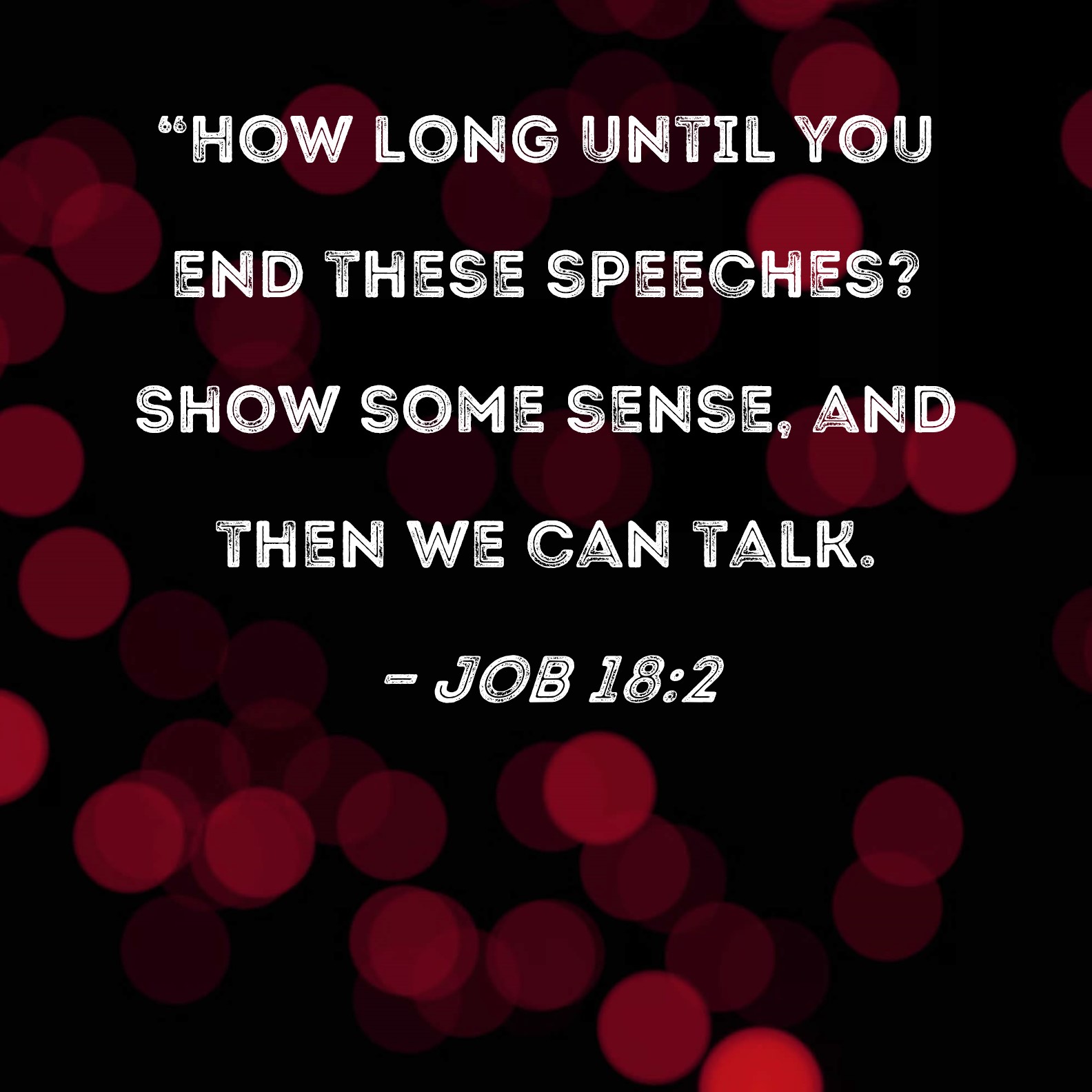 Job 18:2 "How long until you end these speeches? Show some sense, and then we can talk.