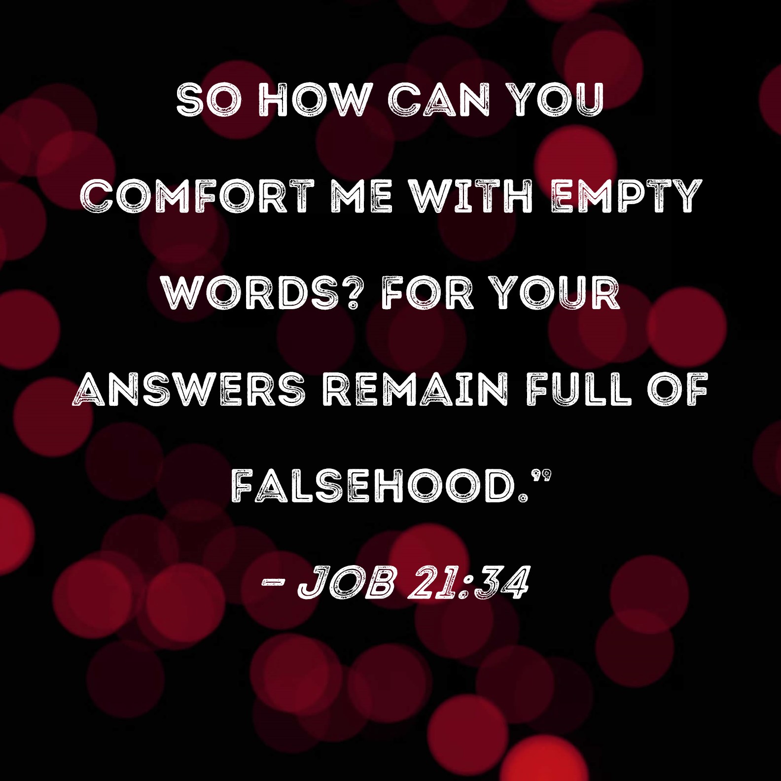Job 21:34 So how can you comfort me with empty words? For your answers remain full of falsehood."