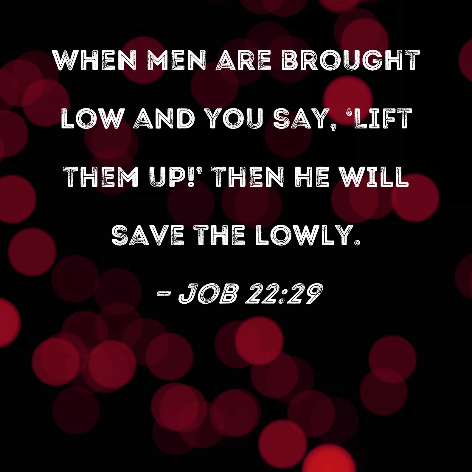 Job 22:29 When men are brought low and you say, 'Lift them up!' then He will save the lowly.