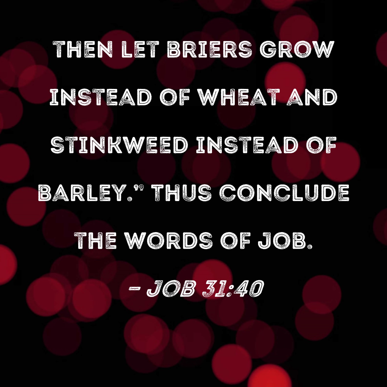 Job 31:40 then let briers grow instead of wheat and stinkweed instead of barley." Thus conclude the words of Job.