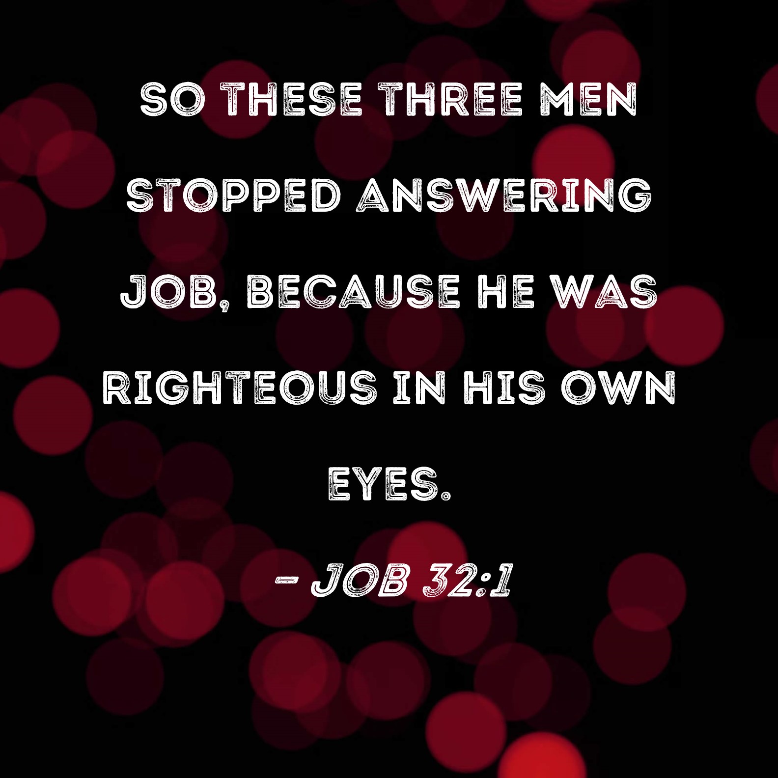 Job 32:1 So these three men stopped answering Job, because he was righteous in his own eyes.
