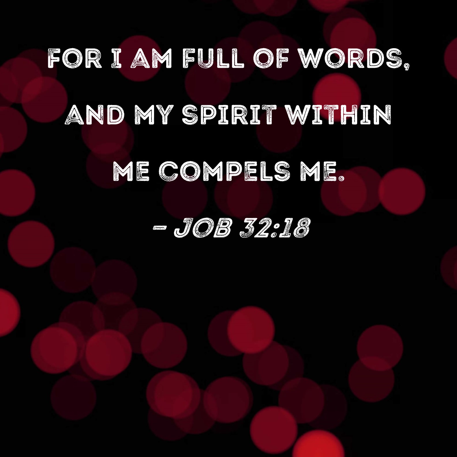 Job 32:18 For I am full of words, and my spirit within me compels me.