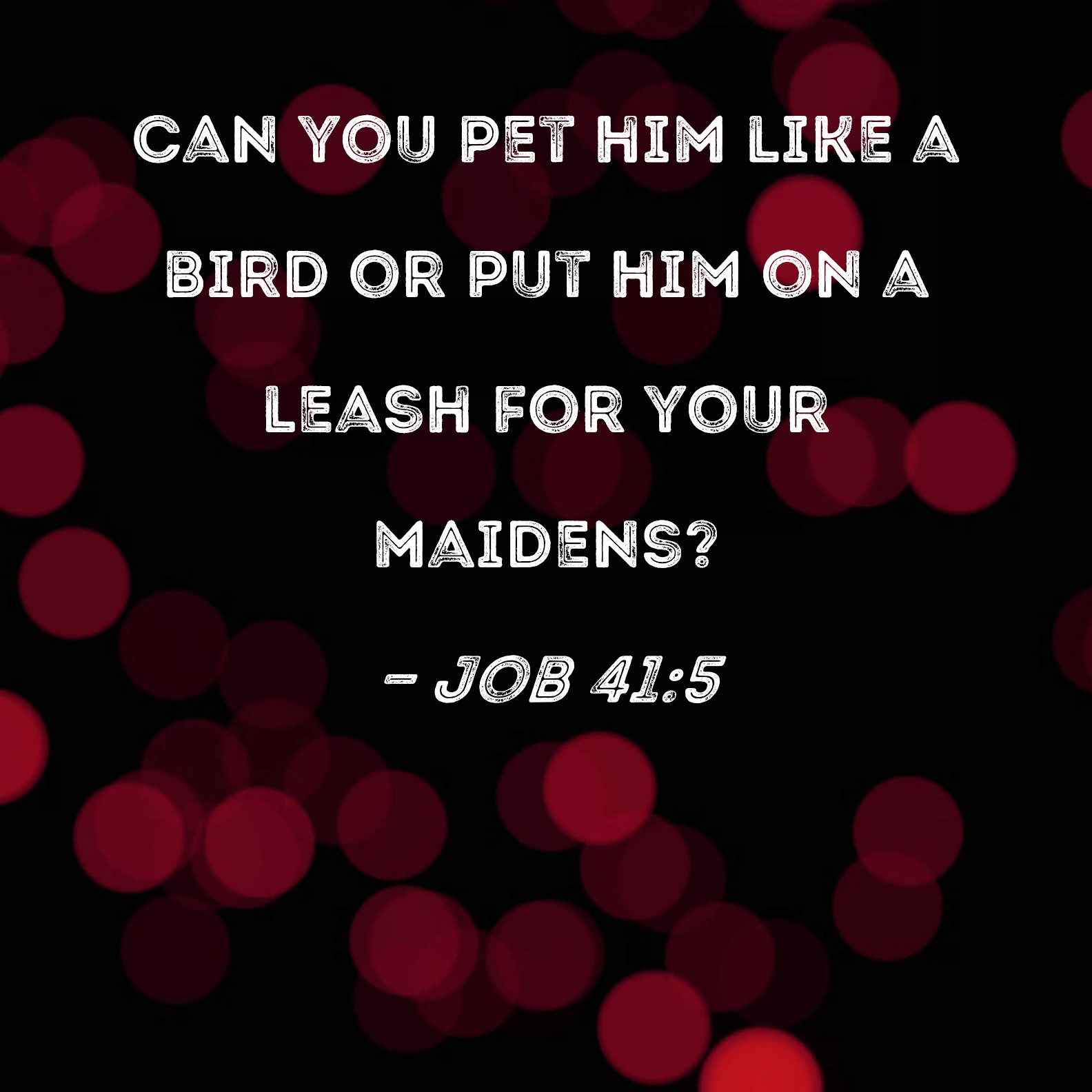 Job 41:5 Can you pet him like a bird or put him on a leash for your maidens?