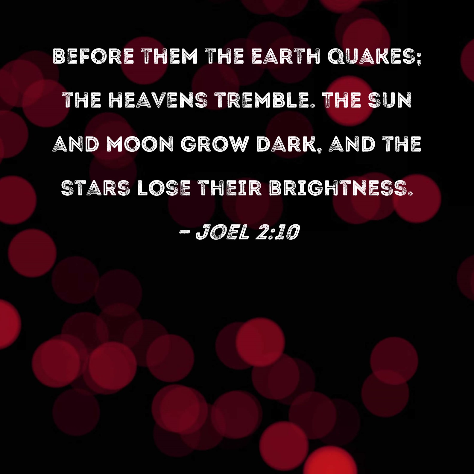 Joel 2:10 Before them the earth quakes; the heavens tremble. The sun and moon grow dark, and the stars lose their brightness.
