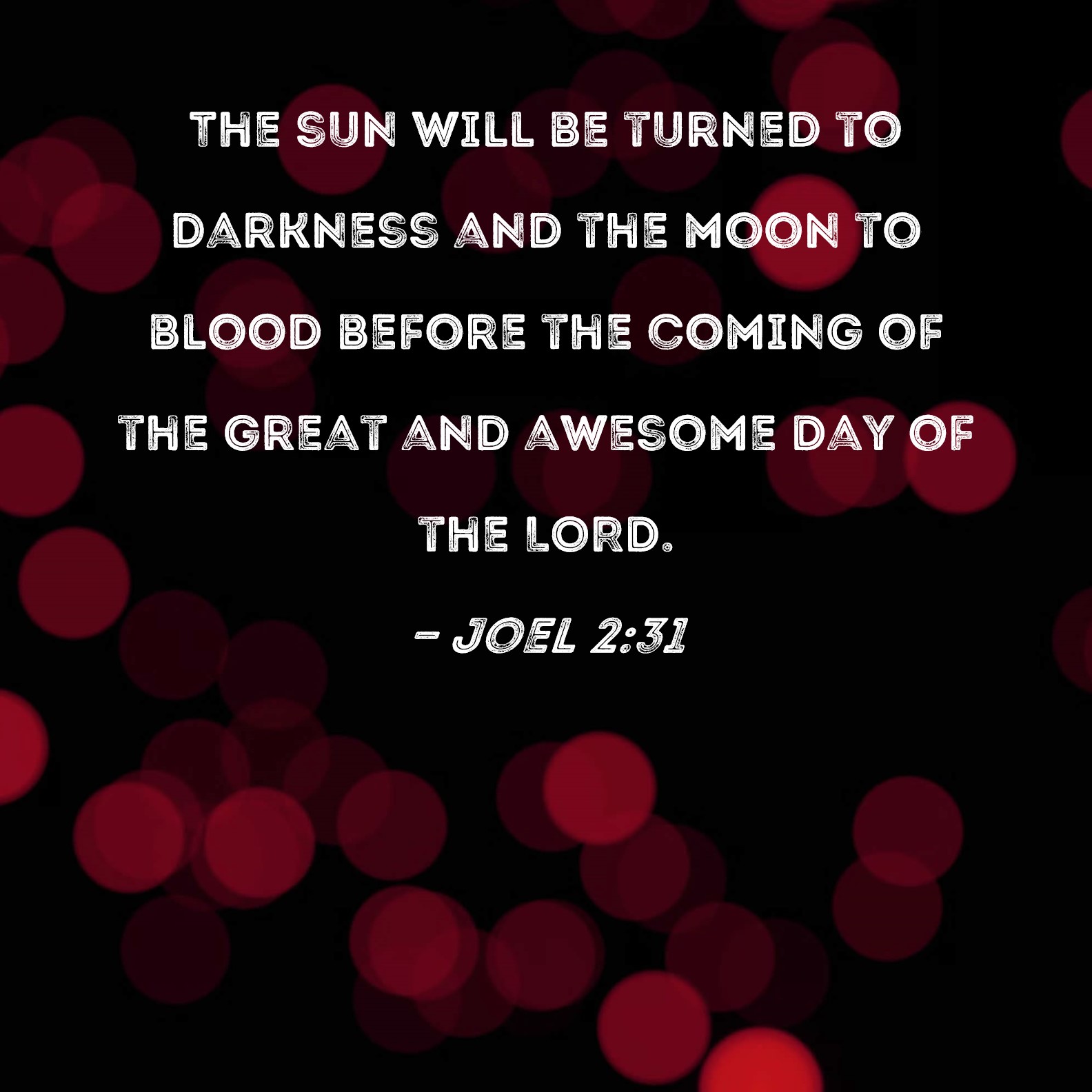 Joel 2:31 The sun will be turned to darkness and the moon to blood before the coming of the great and awesome Day of the LORD.
