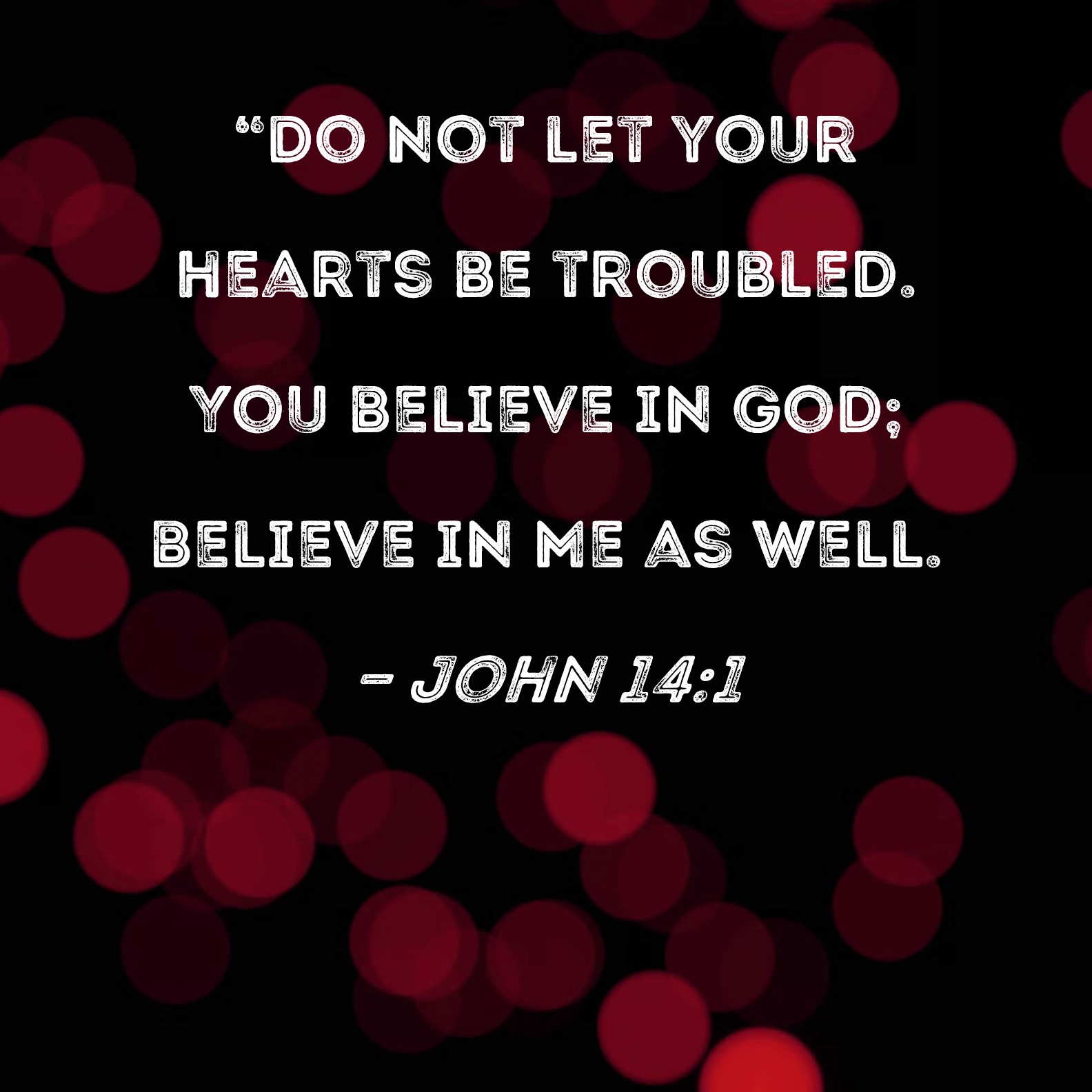 "Do not let your hearts be troubled. You believe in God; believe in Me as well.