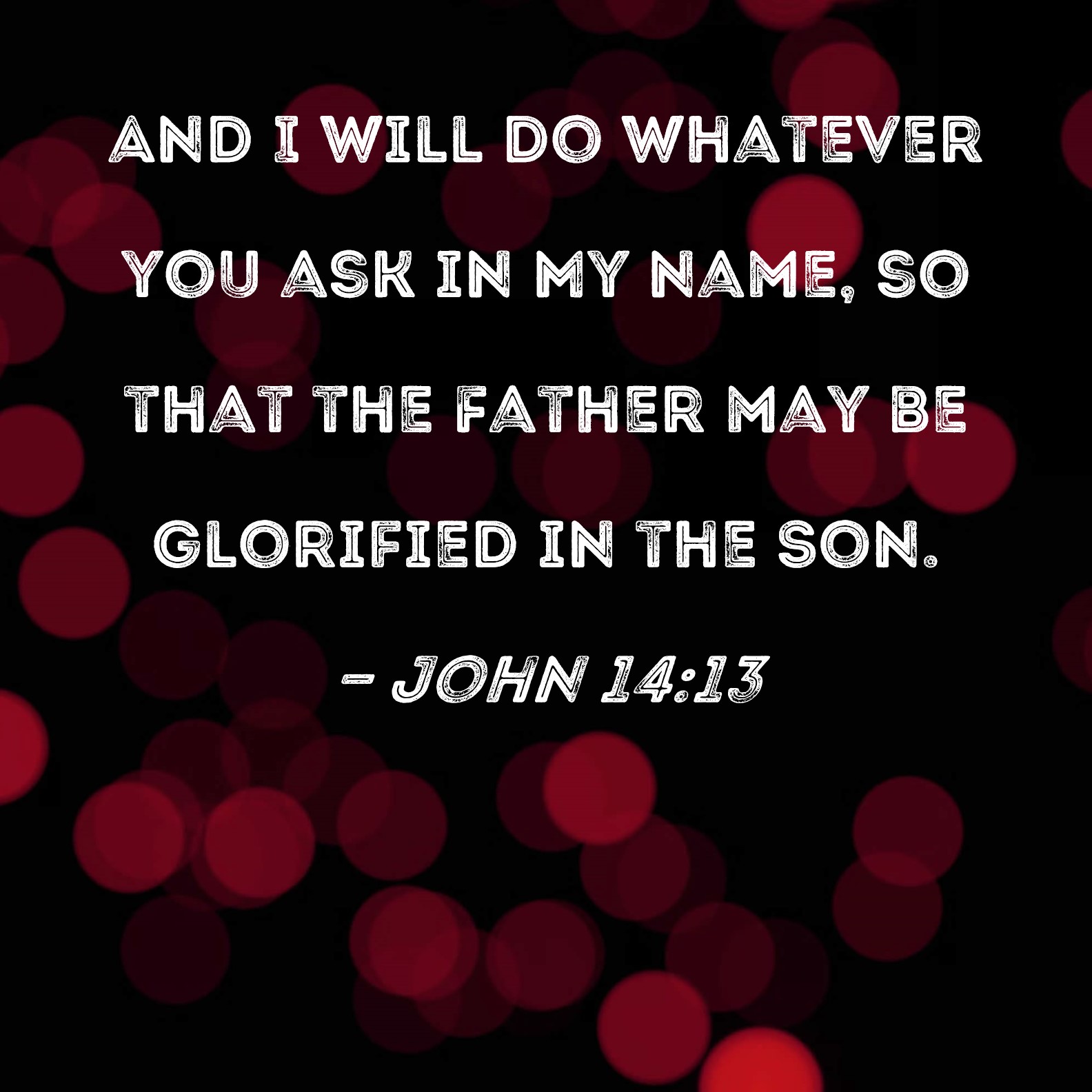 John 14:13 And I will do whatever you ask in My name, so that the Father may be glorified in the Son.