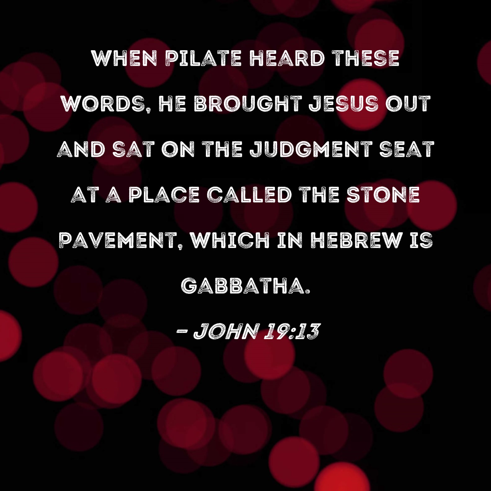 John 19:13 When Pilate heard these words, he brought Jesus out and sat on the judgment seat at a place called the Stone Pavement, which in Hebrew is Gabbatha.