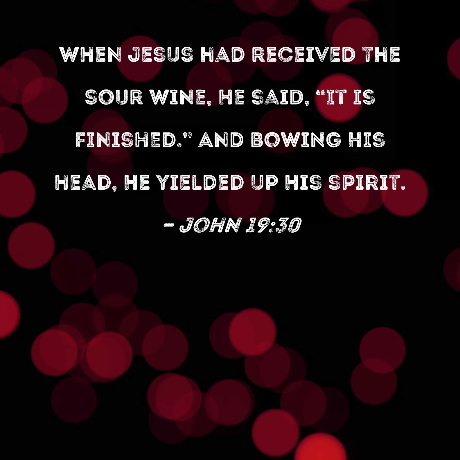 John 19:30 When Jesus had received the sour wine, He said, "It is finished." And bowing His head, He yielded up His spirit.