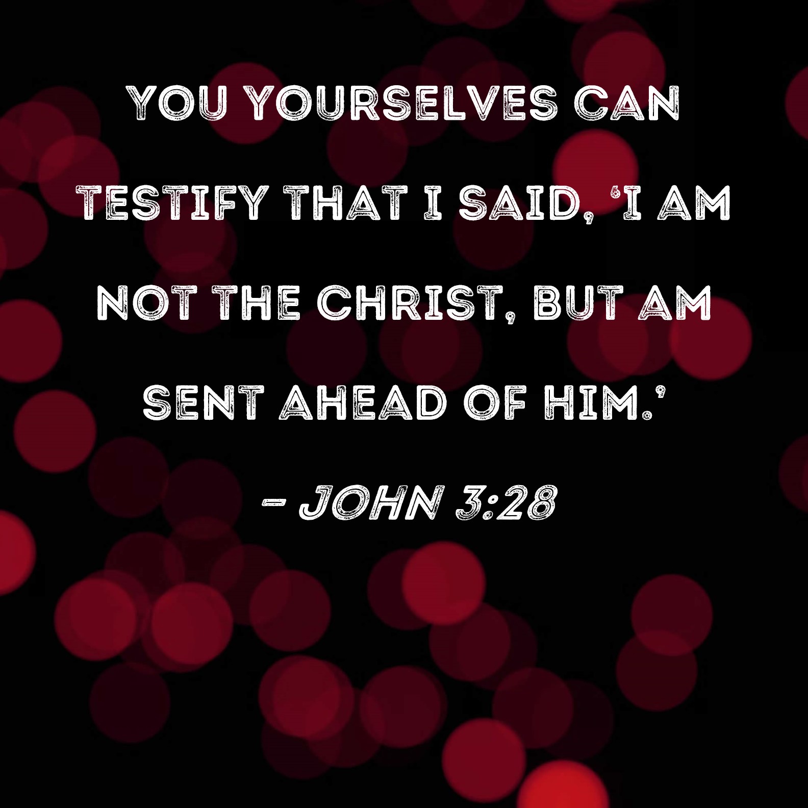 John 3:28 You yourselves can testify that I said, 'I am not the Christ, but am sent ahead of Him.'
