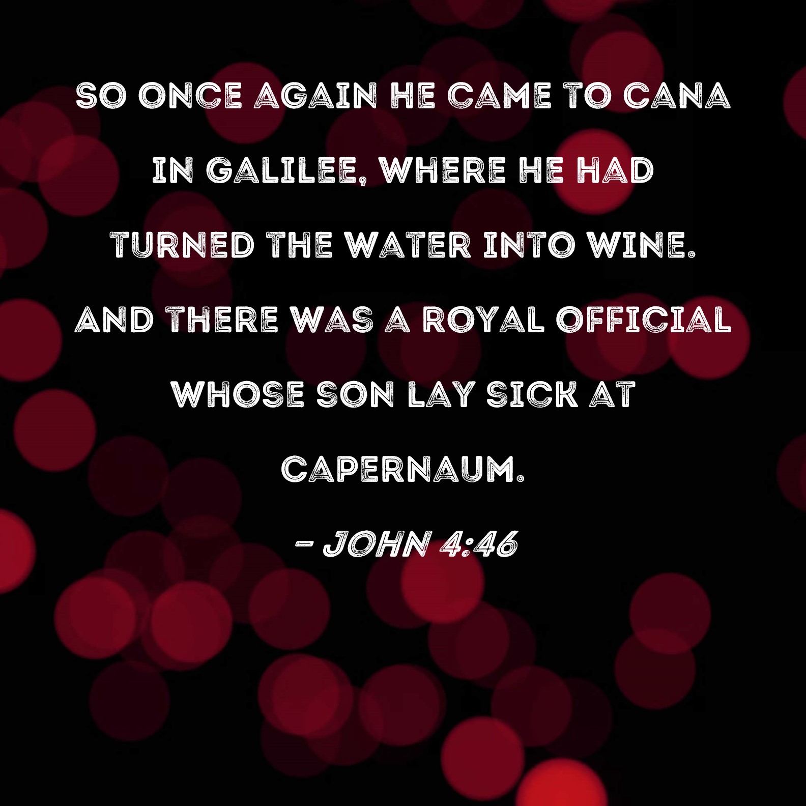 John 4:46 So once again He came to Cana in Galilee, where He had turned the water into wine. And there was a royal official whose son lay sick at Capernaum.