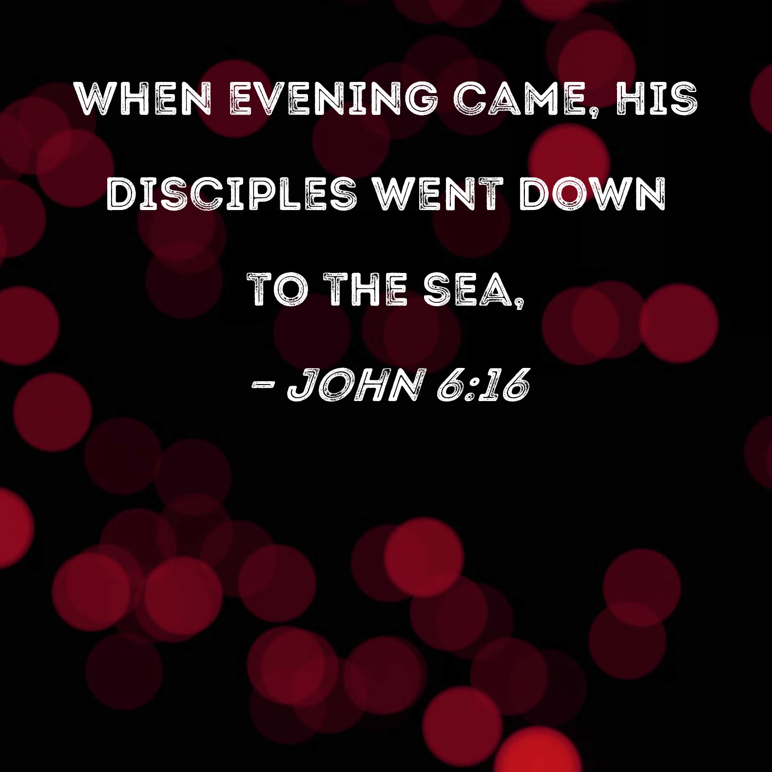 BSB: When evening came, His disciples went down to the sea, KJV: And when even was now come, his disciples went down unto the sea, DRB: And when evening was come, his disciples went down to the sea. DBT: But when evening was come, his disciples went down to the sea, ERV: And when evening came, his disciples went down unto the sea; WBT: And when evening had now come, his disciples went down to the sea, WEB: When evening came, his disciples went down to the sea. YLT: And when evening came, his disciples went down to the sea,Links John 6:16 NIV • John 6:16 NLT • John 6:16 ESV • John 6:16 NASB • John 6:16 KJV • John 6:16 Interlinear • John 6:16 Commentaries • John 6:16 Parallel Texts • John 6:16 Bible Apps • John 6:16 Parallel • Bible Hub |
